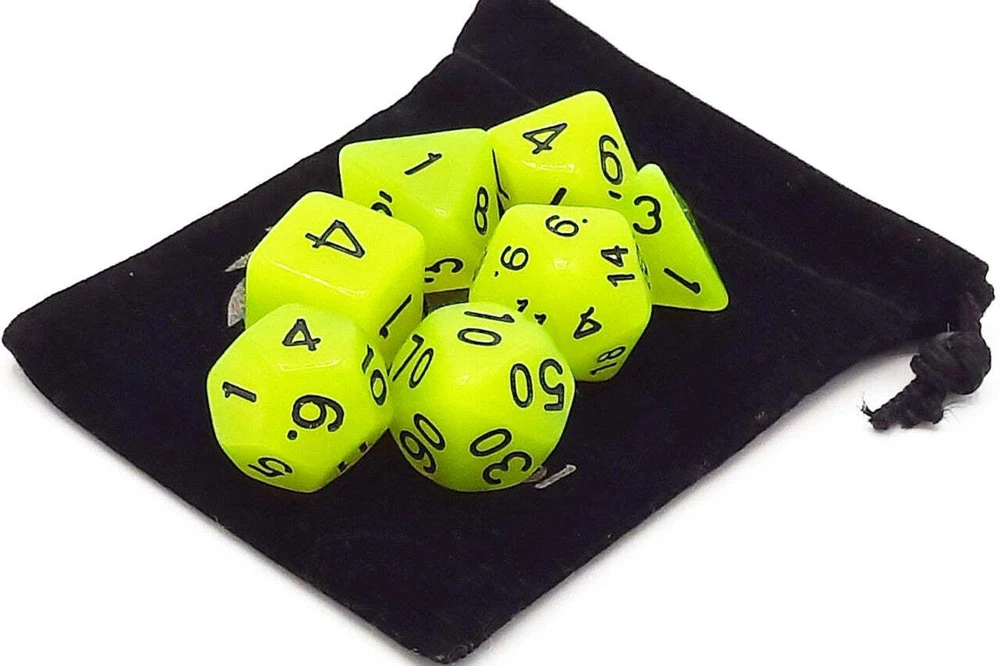Old School 7 Piece DnD RPG Dice Set Glow Dice Yellow Old School Dice & Accessories carries a wide range of premium & specialty dice. Each fabulous set is hand checked to make sure that you are getting the highest quality. Made of a strong resin blend, these dice have colors that are clear and bold. Our dice sets work great for RPG's such as DnD, Pathfinder, Call of Cthulhu and other games. Each RPG 7-dice set includes all of the standard polyhedral dice. 7-PIECE DICE SET INCLUDES One of the following: d4,d6,d8,d10,d10(00-90),d12,d20 FEATURES Great for DnD, Pathfinder, Call of Cthulhu and other RPG's Standard, 16mm size Great weight, balance and feel for even rolling Strong & vibrant colors with clear lettering Old School 7 Piece DnD RPG Dice Set Glow Dice Yellow Old School Dice & Accessories carries a wide range of premium & specialty dice. Each fabulous set is hand checked to make sure that you are getting the highest quality. Made of a strong resin blend, these dice have colors that are clear and bold. Our dice sets work great for RPG's such as DnD, Pathfinder, Call of Cthulhu and other games. Each RPG 7-dice set includes all of the standard polyhedral dice. 7-PIECE DICE SET INCLUDES One of the following: d4,d6,d8,d10,d10(00-90),d12,d20 FEATURES Great for DnD, Pathfinder, Call of Cthulhu and other RPG's Standard, 16mm size Great weight, balance and feel for even rolling Strong & vibrant colors with clear lettering × × × Buy now and save! Shipping info Click the Shipping & Payments tab above the listing description for more info Click the Shipping & Payments tab above the listing description for more info! Additional delivery notes PICK UP OPTION Sorry, our items are NOT available for pick-up. PAYMENT Immediate payment is required upon selecting "Buy It Now" or upon checking out through the cart. We accept payment via U.S. PayPal accounts and all Major Credit Cards, Debit Cards & Google Pay. We are legally required to collect sales tax in those states and localities where we maintain a physical presence (nexus). The applicable amount of sales tax charged to an order will be calculated based on the shipment destination's state and local sales tax laws. Thank you for shopping with us on eBay! Additional Information No additional information at this time Ask seller a question You might also like Phantom Starkiller #1 McFarland Action FIgure Exclusive Trade Dress Proctor Valley Road #1 Hutchison Exclusive Cover Nice House on the Lake #1 Richard Luong Exclusive Punchline Gotham Game #2 Ivan Tao Exclusive Trade Dress Contact To contact our Customer Service Team, simply click the button here and our Customer Service team will be happy to assist. Ask seller a question © State of Comics Shipping & Payments Click the Shipping & Payments tab above the listing description for more info Payment Accepted Payment Methods Immediate payment is required upon selecting "Buy It Now" or upon checking out through the cart. We accept payment via U.S. PayPal accounts and all Major Credit Cards, Debit Cards & Google Pay. We are legally required to collect sales tax in those states and localities where we maintain a physical presence (nexus). The applicable amount of sales tax charged to an order will be calculated based on the shipment destination's state and local sales tax laws. Thank you for shopping with us on eBay! Returns Returns are not accepted Seller will pay for return shipping. eBay integration by