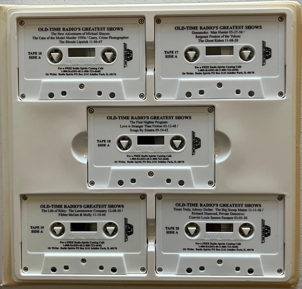 Radio Spirits has specialized in capturing the magic that was old time radio for decades. This collection perfectly exemplifies what makes their work so valuable! Return to the thrilling days of yesteryear with this amazing collection of radio programs from the 1940s and 1950s! Available with this listing is the Radio Spirits “Old Time Radio’s Greatest Shows” collection. It features episodes from 60 radio programs on 30 90-minute cassettes, amounting to a whopping 20 hours of classic, nostalgic entertainment from the golden era of radio! Any person of a certain age (ahem) will likely remember many of these shows and would appreciate the collection as a remembrance of those bygone days! We purchased this item for our parents as a Christmas gift in 1999 to accompany a reproduction period Crosley radio (we know that the originals didn’t have cassette players built in). While they enjoyed the radio, once the plastic wrap came off of this item it just sat on a bookshelf in first their home and then our mothers after our father passed. The cassettes, sadly, were never played and have been closed up in the plastic case for the last 25 years. Also included are a booklet with detailed information about each radio program as well as the 1999-2000 Radio Spirits catalog. PLEASE NOTE : Despite the fact that this item has been in a non-smoking home for its entire life, the outside of the plastic case has discolored somewhat to a very light brown, perhaps just from exposure to the air and possibly to sunlight. Inside, though, the plastic case as well as the cassettes are pristine white and look brand new. It is due to this discoloration that we are selling this item as VERY GOOD and are pricing it accordingly. Photos included with this listing are of the actual item, not stock. Please remember color can vary a bit due to lighting. Take advantage of this unique opportunity to pick up this awesome item that will make a great gift for someone special or keep it for yourself! This item will be shipped via USPS Ground Advantage. * * * From the Amazon Website * * * “This value packed collector package features 60 programs from 60 different series. Enjoy the most popular radio stars including “Burns & Allen” , “Jack Benny” , “The Lone Ranger” , “The Green Hornet” , and many, many more. An anecdotal guide is included to give you a more in-depth look at each show included in the package. This collection makes a wonderful gift.” * * * * * CONDITION: Each item offered is in pristine-to-mint condition, meaning there are no obvious defects to the item itself and there are no holes or tears to the packaging, where applicable. All items are 100% guaranteed authentic. RETURNS: In the unlikely occurrence a return is requested, returns will be accepted within 30 days of the item being received according to eBay Policy, so long as the item is unopened, in its original condition for resale, and includes ALL original packaging materials. PLEASE NOTE: The Buyer is solely responsible for all fees and shipping costs associated with the return of any items. SHIPPING: Shipping costs included in the purchase price will be via United States Postal Service, are for domestic shipping within the United States ONLY, and include tracking. A packing slip will be included. Additional services may be available for your shipment, so please contact us before making payment with any special requests in that regard. All possible care is taken in handling and packaging to ensure items arrive in the condition stated above. Each item is securely packaged to avoid any possible damage while in transit. If you have any questions or concerns, please feel free to contact us using the Secure eBay Message System. * * * * * THANKS FOR LOOKING!