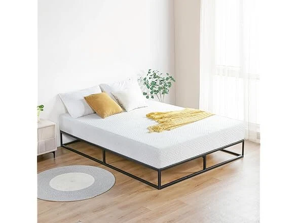 Olee Sleep 9 Inch Modern Metal Platform Bed Frame, Steel Slat Anti-Slip Support, Steel Mattress Foundation, No Box Spring Needed, Black, Queen Size Condition: New Features [ Outer Dimensions ] - 79.5 x 59.5 x 9 inches [ Inner Dimensions ] - 77.5 x 57.5 inches [ Sturdy Construction ] - Crafted with reinforced high-quality steel which ensures both safety and durability, offering a strong and dependable support structure for capacity up to 700 lbs [ Minimal Design ] - Modern and minimal anti-slip steel slat foundation with a sleek black finish that understands and fits perfectly into your bedroom style [ Noise Free ] - Precise engineering and advanced technology guarantee a quiet, noise free, sleeping environment [ Extra Storage ] - Convenience extra under bed storage space with a vertical clearance of approximately 8 inches [ No Box Spring Needed ] - Versatile design provides supportive foundation compatible with a spring, hybrid or memory foam mattress, with or without box spring [ Easy Assembly ] - Effortless self-assembly with included instruction manual, tools, and all necessary parts for a hassle-free setup experience Installation Manual (PDF) Specs In the Box: (1) Olee Sleep 9 Inch Modern Metal Platform Bed Frame, Steel Slat Anti-Slip Support, Steel Mattress Foundation, No Box Spring Needed, Black, Queen Size Specifications Item Weight: 39.8 pounds Item Dimensions: 79.5"L x 59.5"W x 9"H Size: Queen Ground to Item Distance: 9 inches Care Instructions: Wipe with Dry Cloth Special Feature: Minimal Design, Sturdy Construction, Extra Storage, Noise Free