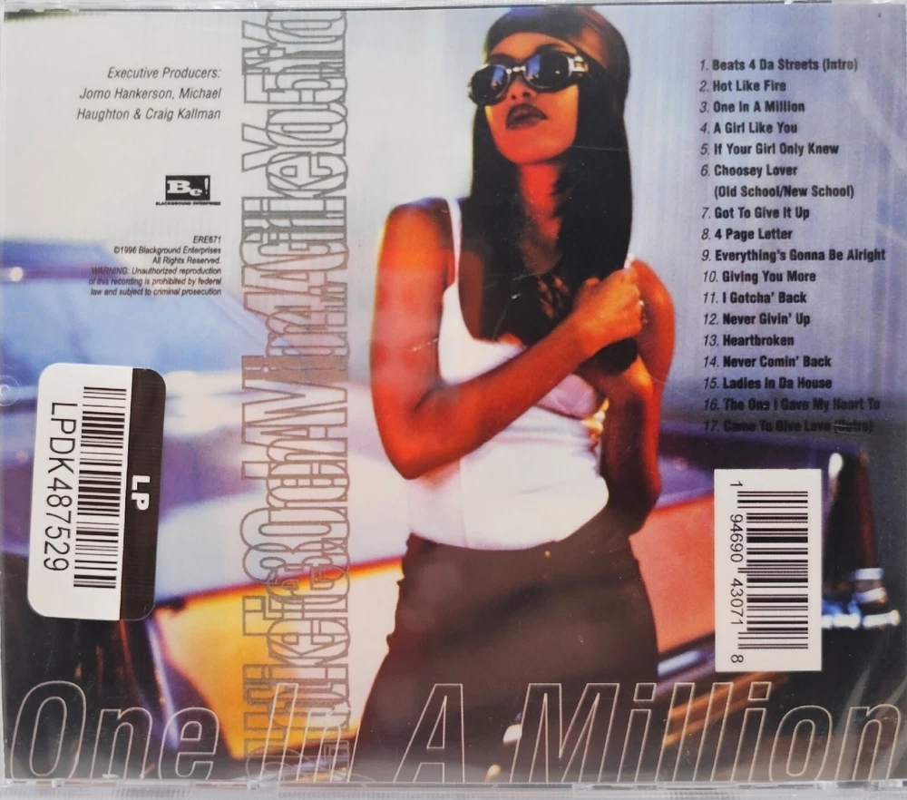 This is a brand new factory sealed item. **PLEASE BE AWARE THIS CD COMES IN A JEWEL CASE. SOME JEWEL CASES MAY HAVE CRACKS FROM STORAGE OR MAY BE DAMAGED BY THE POST OFFICE IN TRANSIT. WE WILL NOT ACCEPT RETURNS FOR DAMAGED JEWEL CASES. JEWEL CASES CAN BE PURCHASED FOR AROUND $.15 IF THE CASE BOTHERS YOU, BUT AGAIN, WE WILL NOT ACCEPT DAMAGE RETURNS OVER THE JEWES CASE** Experience the soulful and captivating voice of Aaliyah in her latest release, "One in a Million". This CD, released in 2021 by Blackground Records, features all the timeless R&B and soul music that made Aaliyah a legend. The CD is brand new and sealed, making it the perfect addition to any music lover's collection. This CD comes in the popular format of a standard audio CD and boasts an impressive list of features including Aaliyah's signature vocals and classic R&B sound. Don't miss out on the opportunity to own this amazing piece of music history. Add "One in a Million" to your CD collection today!