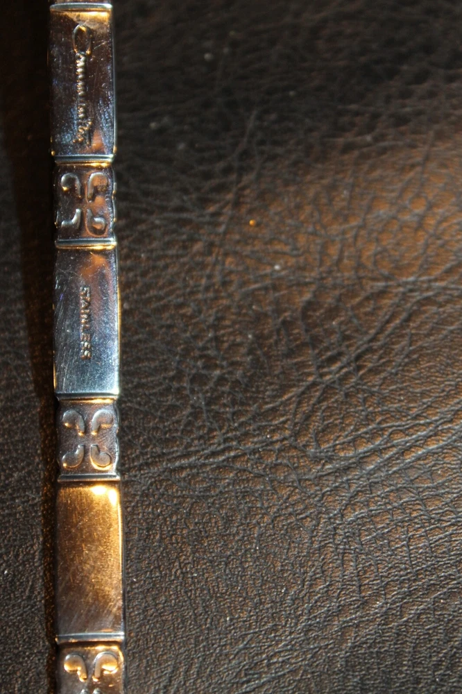 This listing is for a great Oneida Community -- Madrid pattern with the black inset trim. This is for 6 soup spoons, one ladle and a meat serving fork. Excellent gently used condition. Smoke free home. Shipping: Calculate per the calculator below. Outside U.S. contact for shipping rates. New items added daily so make sure to add us to your favorites.