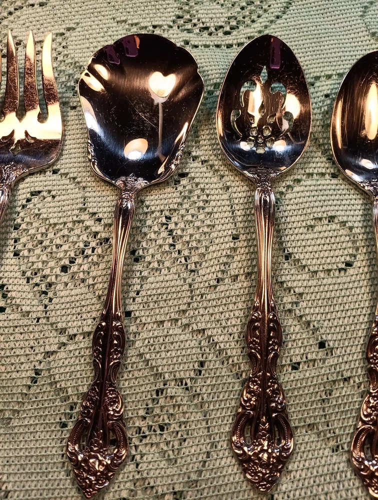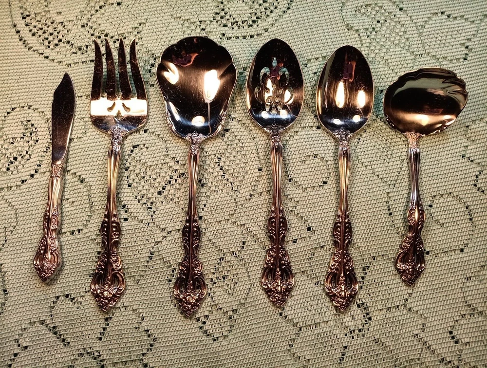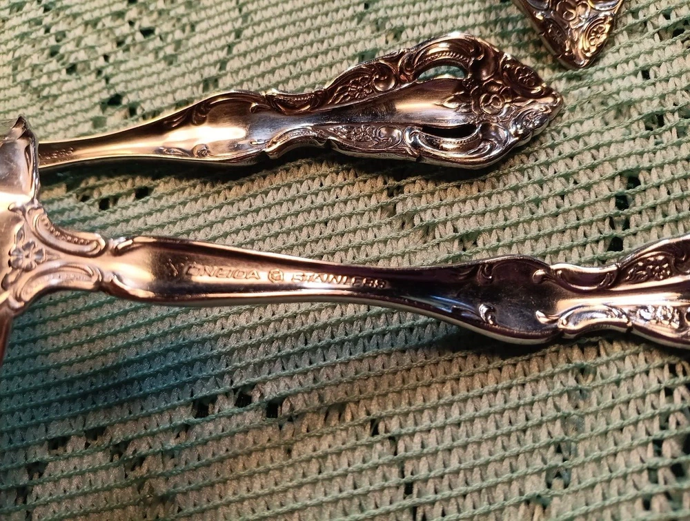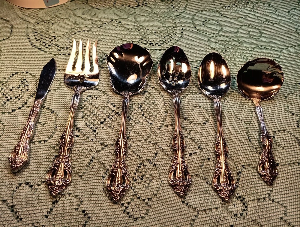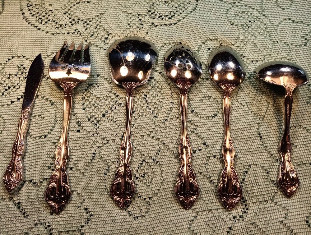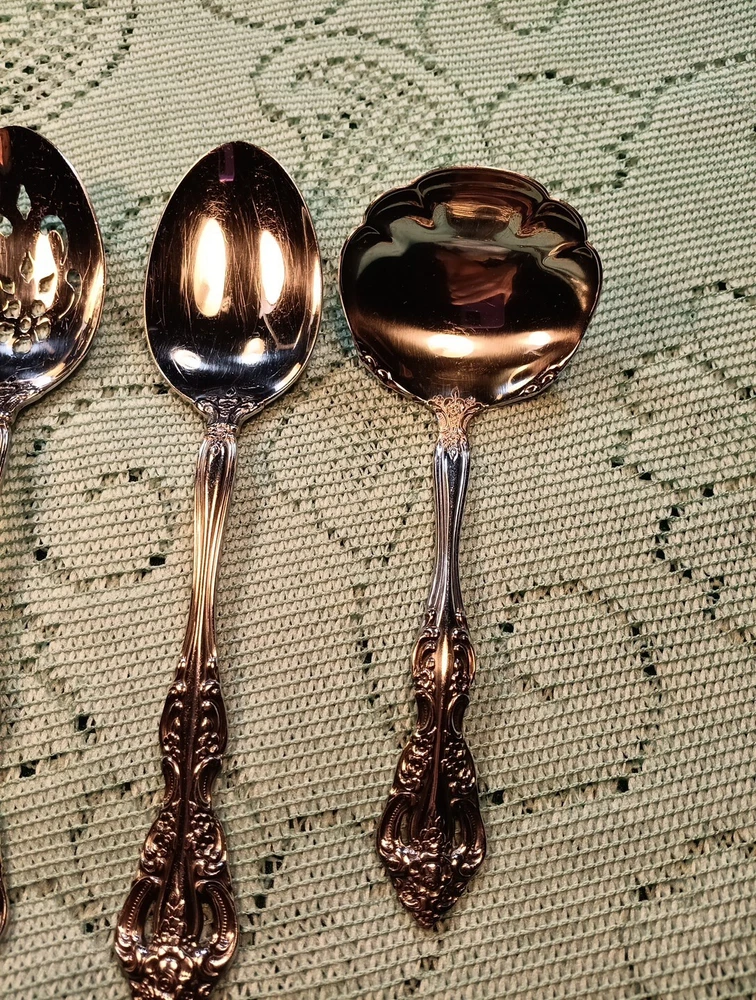 Occasion:All OccasionHandle Material:Stainless SteelType:Hostess SetUPC:Does Not ApplyColor:SilverDepartment:AdultsSet Includes:Ladle, Serving Set, Serving SpoonModel:MichelangeloHandle Pattern:Floralgtin13:Does Not ApplyMaterial:Stainless SteelCountry/Region of Manufacture:United StatesStyle:TraditionalCharacter:naFinish:GlossyBrand:ONEIDASeller Notes:“A few minor scratches”MPN:Does Not Apply