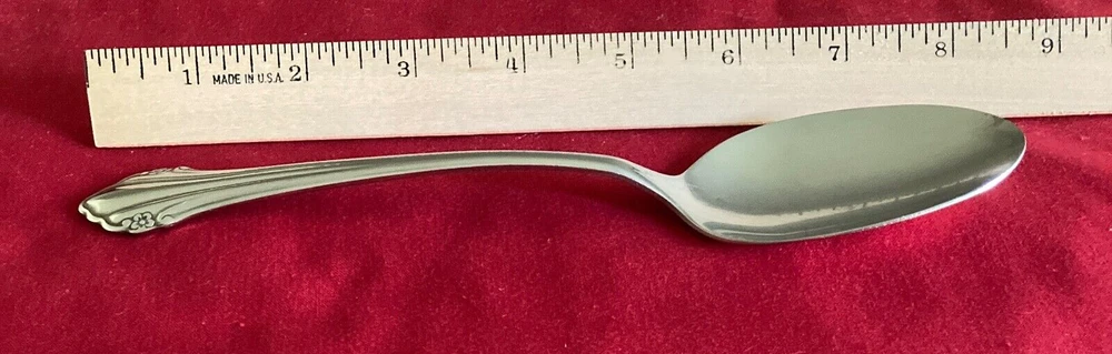 Manufacturer: Oneida Pattern: Repose Type: Stainless Steel Piece: Serving Spoon Length: 8 3/8"