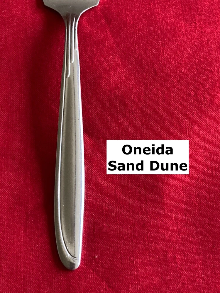 Manufacturer: Oneida Silver Pattern: Sand Dune Type: Stainless Steel Piece: Salad Fork Length: 6 1/4"