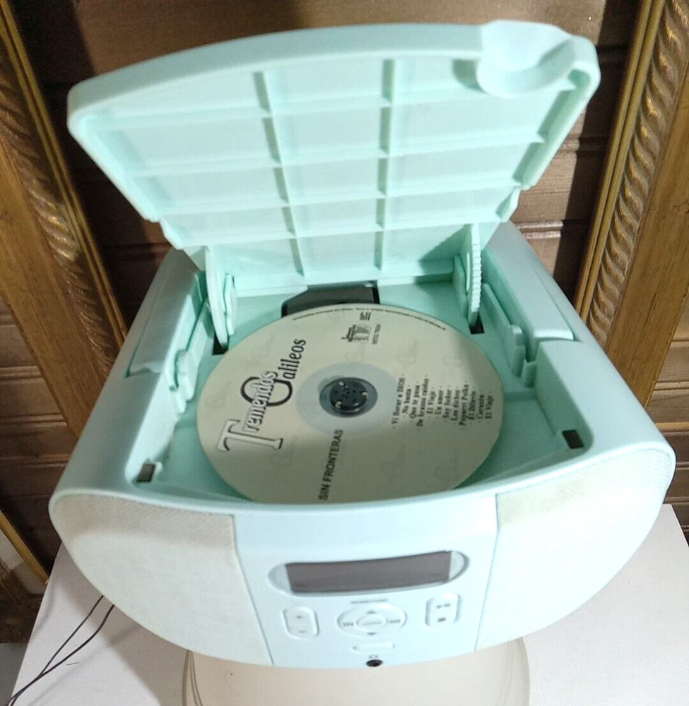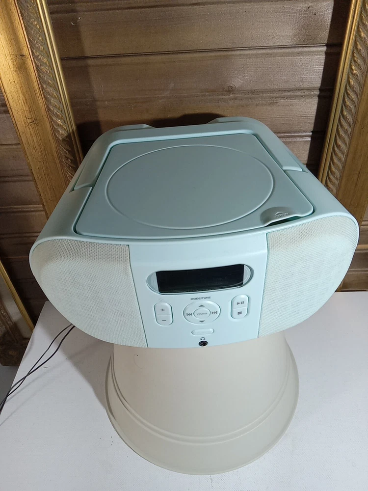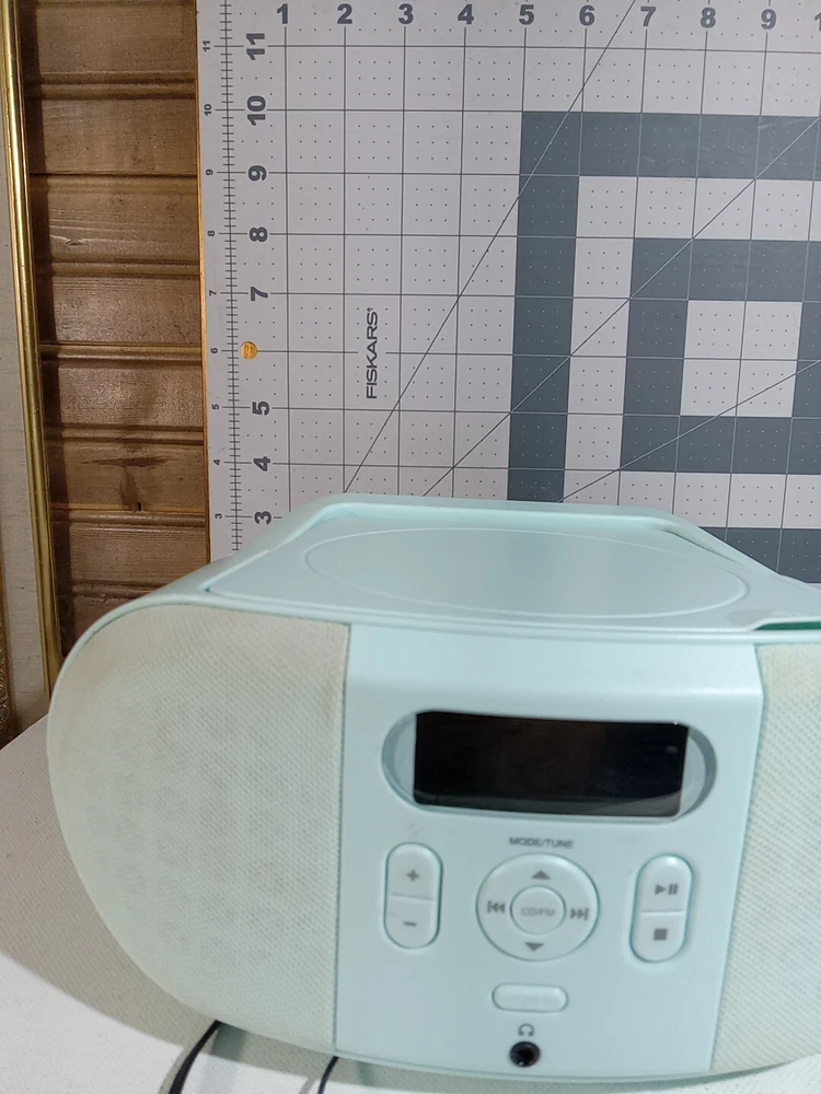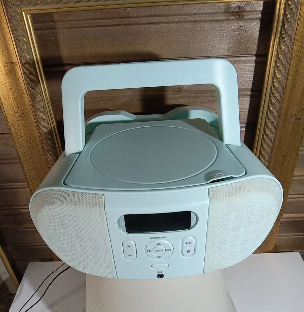 Onn Portable CD & FM Radio Boombox Teal Blue Handle Battery Or AC Power Handle