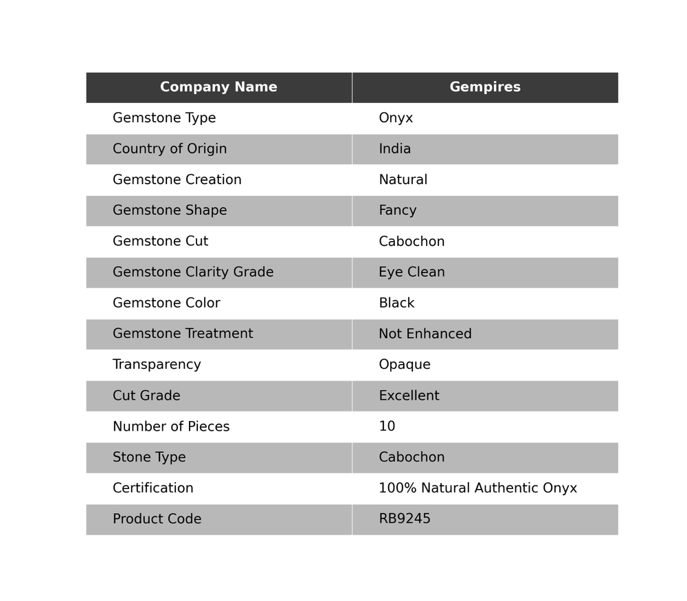 Welcome To Gempires This is a set of 10 pieces of Fancy-shaped Black Onyx gemstones from India. The Onyx gemstones are excellent in cut grade, with a polished form and eye-clean clarity grade. They are 100% natural and authentic, not treated or enhanced in any way. These gemstones are opaque in transparency and are suitable for wholesale purchase. Handmade in India, these Onyx gemstones are ideal for use in jewelry making or as loose gemstones for various crafting projects. Onyx Astrology Gemstone Bracelet Making Cabochon Natural 10 Pcs Wholesale Lot Check My Other Onyx Listings : Click Here Note: For Custom / Bulk Order, Please contact on Ebay Message Service. QUALITY ASSURANCE:- The photo may not give you the actual size, please refer to the item description for size details. Our product Images are original. We dont use Photoshop for any editing. We always do our best to display an actual image of the gemstone which is to be delivered to our customers. We check all our items and ensure the best quality standards. The item weight may vary 5% (+/-) at maximum and size may vary .10 cents (+/-) as per the gemstone standard. Return Policy:- Any reason, if you are not satisfied with our product, you may return item within 14 days from the date of product delivered. The Item must be returned in its original condition. Return shipping will be paid by buyer. Shipping Policy: At Gempires, we offer two shipping options for our customers: Standard Shipping: 13-15 Days Express Shipping: 5-7 Days Standard Shipping: Our standard shipping option takes approximately 13-15 days for delivery. Please note that this is an estimated time frame and may vary depending on your location and any unforeseen circumstances. We strive to ensure that your order is processed and shipped as quickly as possible. Express Shipping: If you need your order delivered quickly, we offer an express shipping option that takes approximately 5-7 days for delivery. This option is available at an additional cost, which will be displayed during the checkout process. Please note that this time frame is an estimated delivery time and may vary depending on your location and any unforeseen circumstances. Handling Time All orders are processed and shipped within 1-2 business days after payment has been received. Once your order has been shipped, you will receive a tracking number via Ebay notifications, which you can use to track your package. Custom Duty Note Please note that we are not responsible for any customs or import duties that may be charged once the package reaches your country. These charges are the responsibility of the buyer and are not included in our shipping fees. We take great care in packaging our products to ensure that they arrive at your doorstep in pristine condition. However, if your package arrives damaged or you have any other concerns about your order, please don't hesitate to contact us. We will do our best to resolve any issues and ensure that you are satisfied with your purchase. Feedback Policy:- At Gempires, we value your feedback and strive to provide the best customer experience possible. We welcome your reviews and appreciate your time in sharing your thoughts about your purchase with us. If you are satisfied with your purchase and our service, we would love to hear about it. Your positive feedback can help other buyers make an informed decision about our products and services. If for any reason you are not completely satisfied with your purchase or our service, please reach out to us before leaving a negative review. We are committed to resolving any issues that may arise and ensuring your satisfaction. Thank you for choosing Gempires for your natural gemstone needs. Your feedback is valuable to us, and we look forward to providing you with exceptional service in the future. Best Regards Gempires