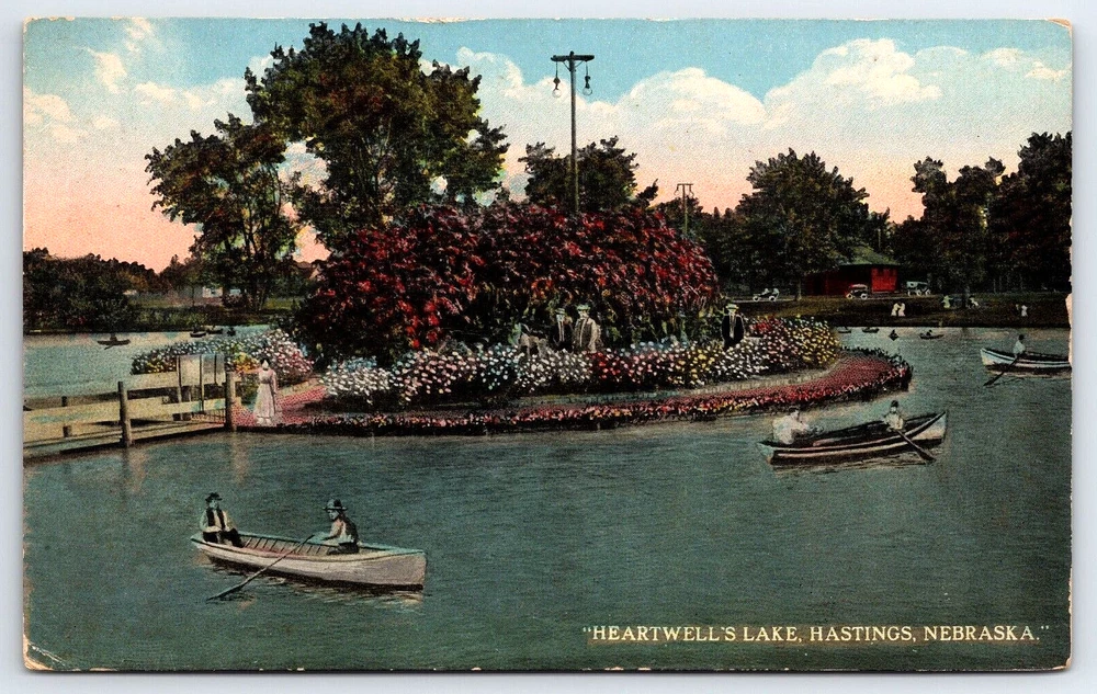 Original Old Vintage Antique Postcard Heartwell's Lake Hastings Nebraska USA