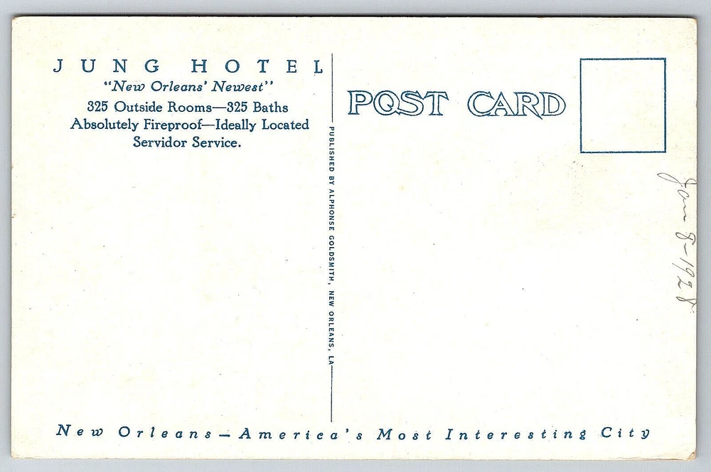 Number of Items in Set: 1 Time Period Manufactured: NA Country: United States Orientation: Vertical gtin13: DOES NOT APPLY Postage Condition: Unposted Size: Standard (5.5 x 3.5 in) Signed: No Color: Multicolor UPC: DOES NOT APPLY Type: Original Genuine Antique Vintage Postcard Location: New Orleans, Louisiana USA Continent: North America City: New Orleans Stamp: No Featured Person: People Signed By: None Theme: Architecture, Cities & Towns, Community Life, Domestic & Family Life, Famous Places, Fashion, Historical Figures, Hotel & Restaurant, Landscapes, Patriotic, People, Roadside America, Seasons, Social History, Transportation, Travel, Postcard, Antique, Vintage, Ephemera, Collectible, Memorabilia, Old, Retro, History, Card, Mail, Paper Features: Divided Back, White Border, Original Genuine Antique Vintage Postcard Brand/Publisher: ASPHONSE GOLDSMITH, NEW ORLEANS, LOUISIANA Material: Paper Region: Louisiana Unit of Sale: Single Unit Era: Divided Back (1907-1915) Subject: Hotel Antique: Yes Posted: No Finish: Matte Seller Notes: “Good Vintage Condition. See Pictures And Description Closely For Details.” Vintage: Yes Country/Region of Manufacture: United States Original/Licensed Reprint: Original