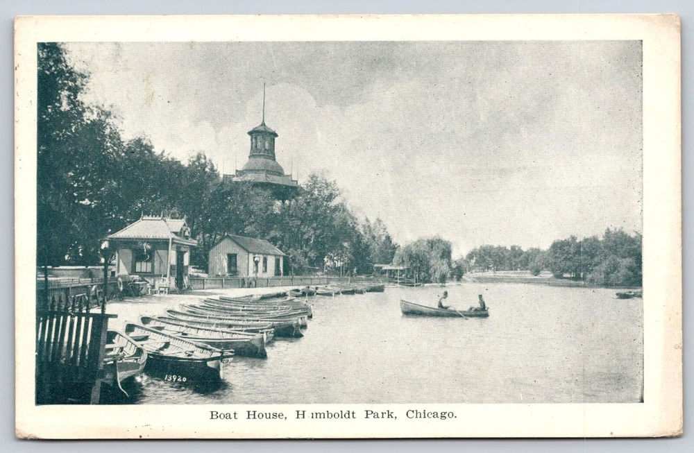 Original Old Vintage Outdoor Postcard Boat House Humboldt Park Chicago Illinois