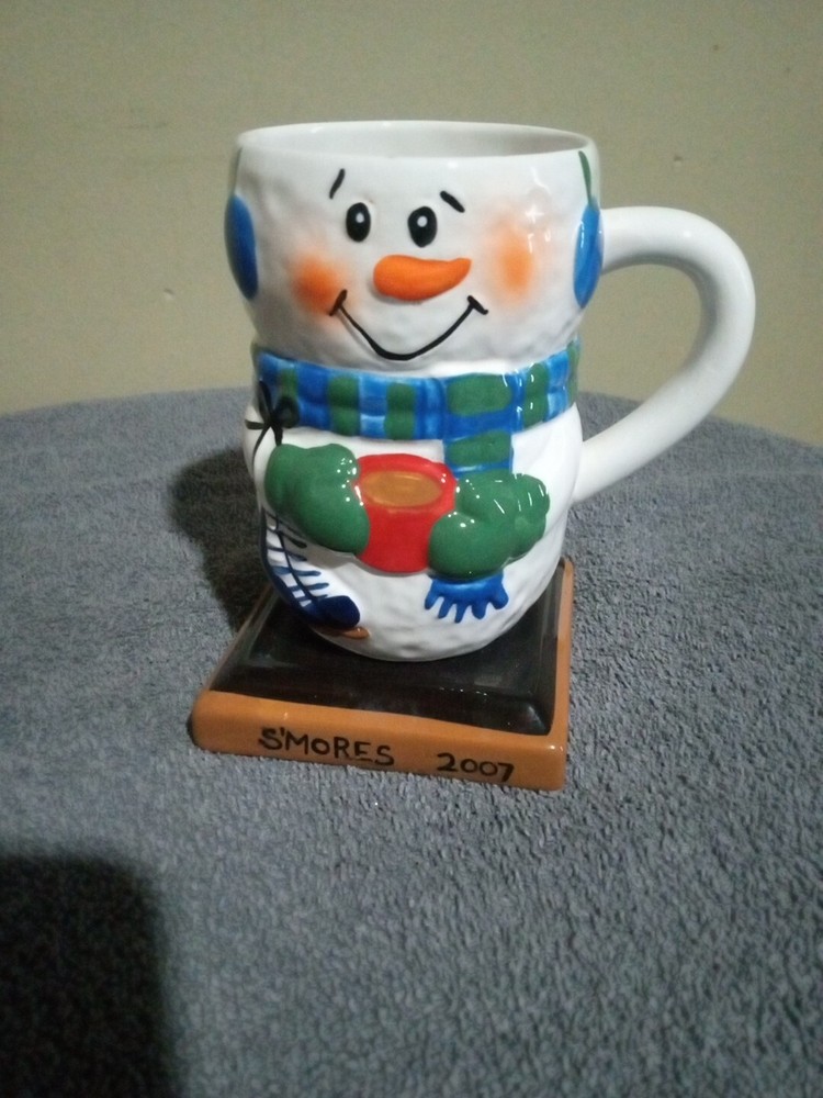 The Original S'mores Snowman Mug by Midwest of Cannon is a ceramic coffee mug with a capacity of 8oz. It features a 3D snowman design and is part of the contemporary style. This mug is decorated and is not microwave or dishwasher safe. It is a licensed original product from The Original S'mores franchise, perfect for winter beverages like hot chocolate or coffee.