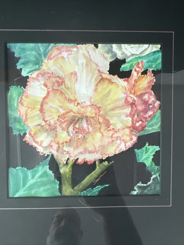 Delve into the delicate charm of floral art with this original pair of watercolor paintings by SOWA. Each piece, featuring iris and begonia, captures the intricate beauty of flowers in a realistic yet still life style. The artist's skillful use of watercolor technique brings a one-of-a-kind vibrancy to each petal, stem, and leaf, creating a visual feast that celebrates both the art of nature and the nature of art. SOWA's American culture-inspired work, framed and measuring 13.5"x13.5", is a testament to the timeless allure of floral themes. These small, exquisitely crafted paintings on paper hail from Washington, USA, and were produced between 2000 and 2009, offering a contemporary take on a classic artistic tradition.