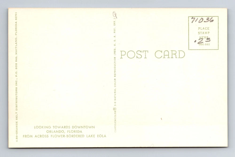Type: Printed (Lithograph) Original/Licensed Reprint: Original Unit of Sale: Single Unit Country: USA Region: Florida Subject: Cities & Towns Postage Condition: Unposted Theme: Cities & Towns City: Orlando Era: Vintage Country/Region of Manufacture: Unknown