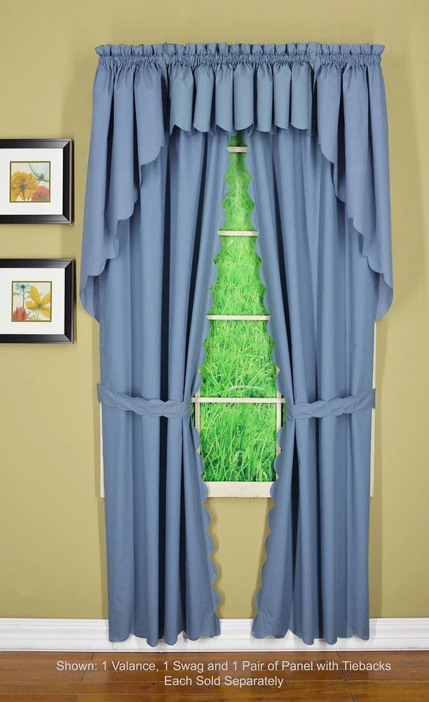 , Orleans Scallop Curtain, Blue 54" Panel Pair and Tieback,4-Piece-Set, 60" W...