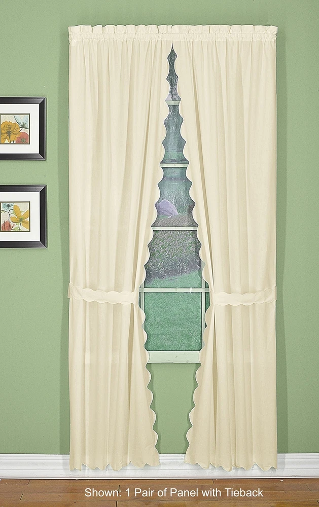 , Orleans Scallop Curtain, Ecru 84" Panel Pair and Tieback,4-Piece-Set, 60" W...
