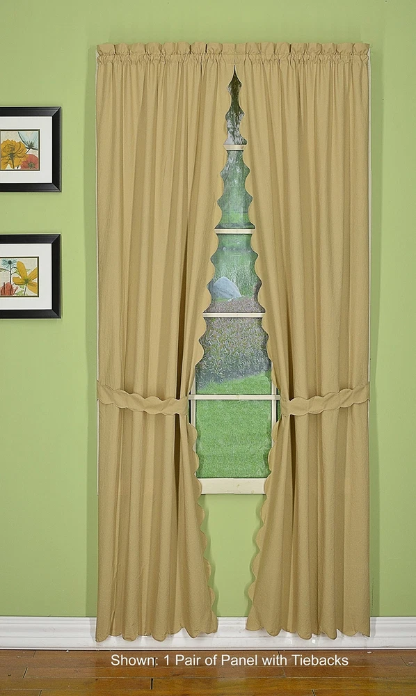, Orleans Scallop Curtain, Linen 63" Panel Pair and Tieback,4-Piece-Set, 60" ...