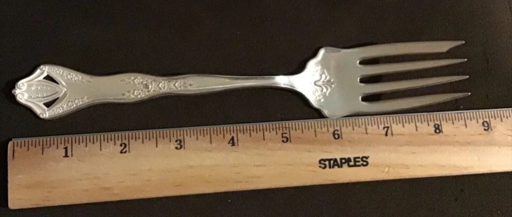 Ornate design on fork. Approximately 8.25” long. Sturdy not flimsy.