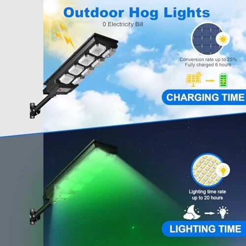 Return Policy Fast Delivery Trusted seller Outdoor Hog Lights for Night Hunting, Green Feeder Light for Hogs, Coyote, Deer, Solar Powered Motion Activated Hunting Light with Remote Control Product Description Incredible Green Solar Charging Hog Hunter Lights-----The green light for hunting is built-in with high-efficiency 288 LED beads, the solar motion activated lamp has high brightness output and good heat dissipation. The great tool for night hunter is equipped with 3.2V/10000mAh lithium iron phosphate battery & advanced polysilicon solar panels. It takes only 6 hours to fully charge during the day and provides 20 hours of continuous light at night. Waterproof & Updated Material-----The hog hunting light is made of ABS material cg, iron galvanized pole & stainless steel installation hoop and screws and other hunting accessory, firm, rustproof, oxidation-resistant, IP65 waterproof level. The green light working temperature range is -22° F~140° F, providing reliable performance for hunting hogs deer predator coyote pig varmint coon in the yard or hunting area. Radar Sensor & Wide Angle Feeder Light-----The outdoor green solar flood light with sensitive radar sensor can detect animals motion up to 220° wide angle and 30ft sensing distance. Featuring a "V" mirror design, illumination area up to 862sq.ft, covers a larger area for night hunting and fishing. Multifunctional Use ----- The hog hunting lamp can be set different modes with remote control: 1. Radar sensing mode (default mode): within 30ft, motion is detected, the brightness will be 100%; after 15 seconds it turns to 20% brightness. 2. Always lighting mode: the light stays at 100% brightness. No Need Electricity & Green Light for Green Energy-----Save the bill, easy to install, no wire, maintenance free, cycle rechargeable green LED flood light, adds much more hunting fun ambience. Suggested installation height is no more than 26ft Shipping Returns Payment Shipping Shipping is FREE to all addresses other than APO/PO boxes in the lower 48 states. All our stock ships from US-based warehouses. Shipped via USPS or UPS (depending on location and package weight) Unless stated otherwise, all orders will ship within 24-72 hours of your payment being processed. Check our feedback to see the great reviews of FAST shipping we offer. Returns Seller does not accept returns Payment We currently accept payment via eBay managed payments only. Once payment is cleared, we will dispatch your shipment within 1-3 business days. Please refer to the "Shipping" tab for more information regarding shipping speed to your destination.