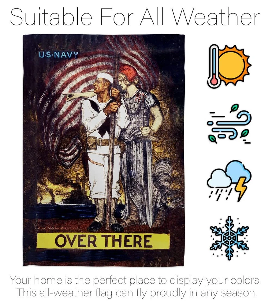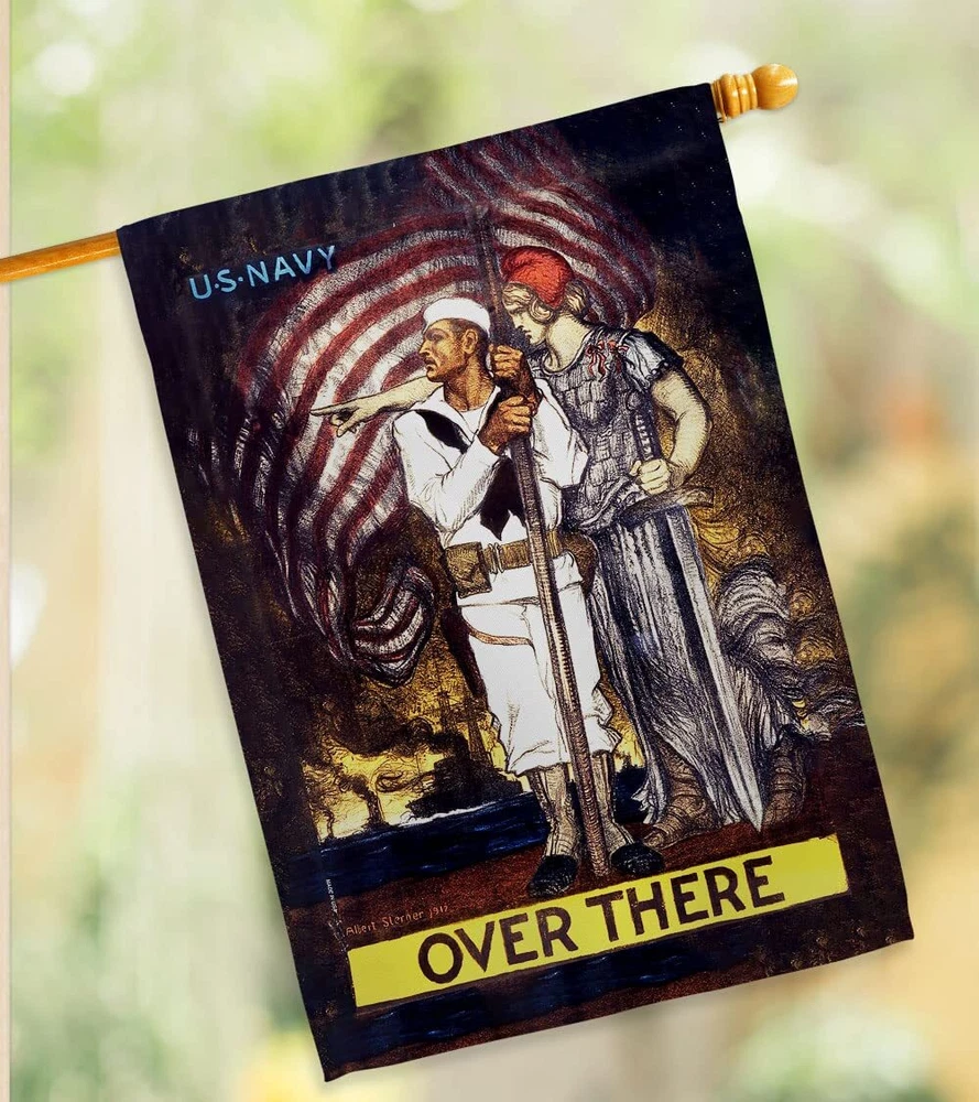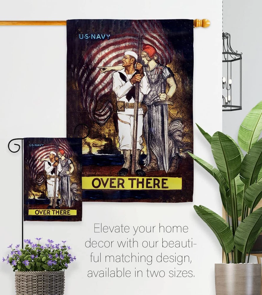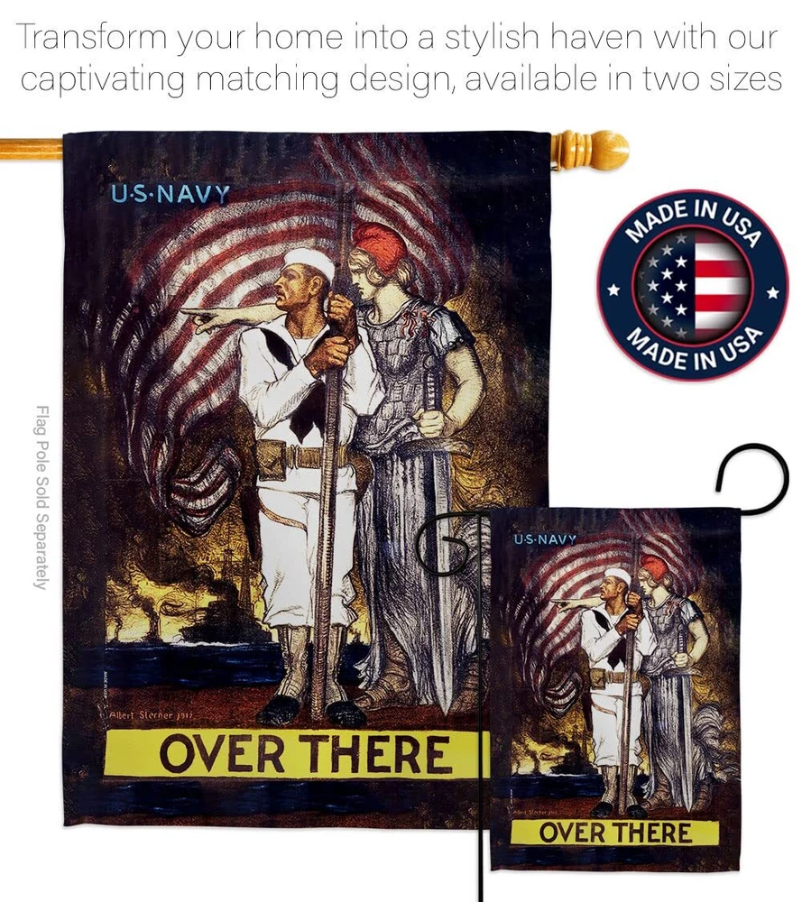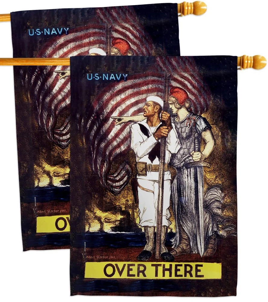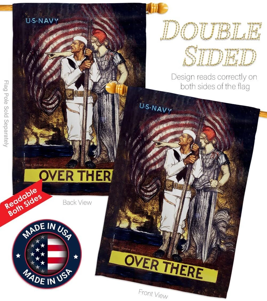 Over There House Flag 2 pcs Pack Armed Forces Navy USN Seabee United State Am...
