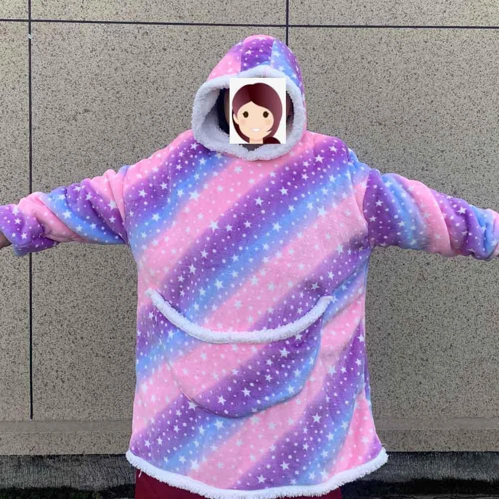 FREE SHIPPING 30 DAYS RETURN EASY PAYMENT Oversized Blanket Hoodie Men Women Gray Big Warm Blanket Hoodie Sweatshirt with Size Measurement Diagram Tips: Clothes Length is from the shoulders to the bottom. Suggest Adults Height 160-180cm Manual measurement may result in 1-3 cm errors, please understand. Thanks ! Features: 1. Fabric:Flannel+Polar Fleece Made of ultra-soft flannel fleece and lined with warming, Sherpa comfort 2. Hooded loose hoodied, easy to wear and off, you can wear the clothes in reverse; 3. The front pockets is cute, the hands can extend into the pockets to keep warm. 4. The cuffs have windproof and warm ribs, which makes the clothes more functional; 5. Normal washing:Machine washable dry hand wash; 6. Package: The package may be squeezed during packing or transportation, especially when purchasing multiple items, open and hang for some time after receiving the goods, the clothes will be restored to the original state. Real photos taken by mobile phone REVIEWS The product came very well packaged. I'm very happy. thank you for everything. Seller strongly recommended. This is great! I definitely recommend! Product looks amazing Delivery was fast. Excellent seller, great communication. I advise everyone