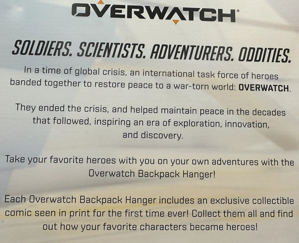 Elevate your Overwatch collection with this exclusive Torbjorn Destroyer Backpack Hanger! This limited edition collectible comes with an accompanying comic book and can easily be attached to your favorite backpack. Show off your love for Blizzard's popular video game series with this unique piece, featuring intricate details and a vibrant design. Crafted with durability in mind and manufactured in an unknown country/region, this backpack hanger is both stylish and functional. It is designed to be washable, making it easy to maintain and keep looking new for years to come. Don't miss out on the chance to add this highly sought-after item to your Overwatch merch collection.