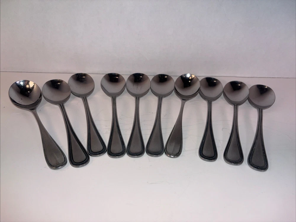 Oxford Hall Stainless Steel Teaspoon Set of 10 Vtg Flatware w/beaded Rim. Need polished, otherwise in Great condition. All measurements in photos. Ships next business day after payment. 🙂
