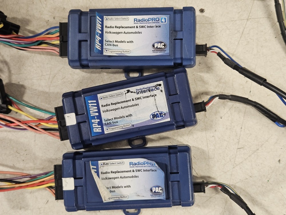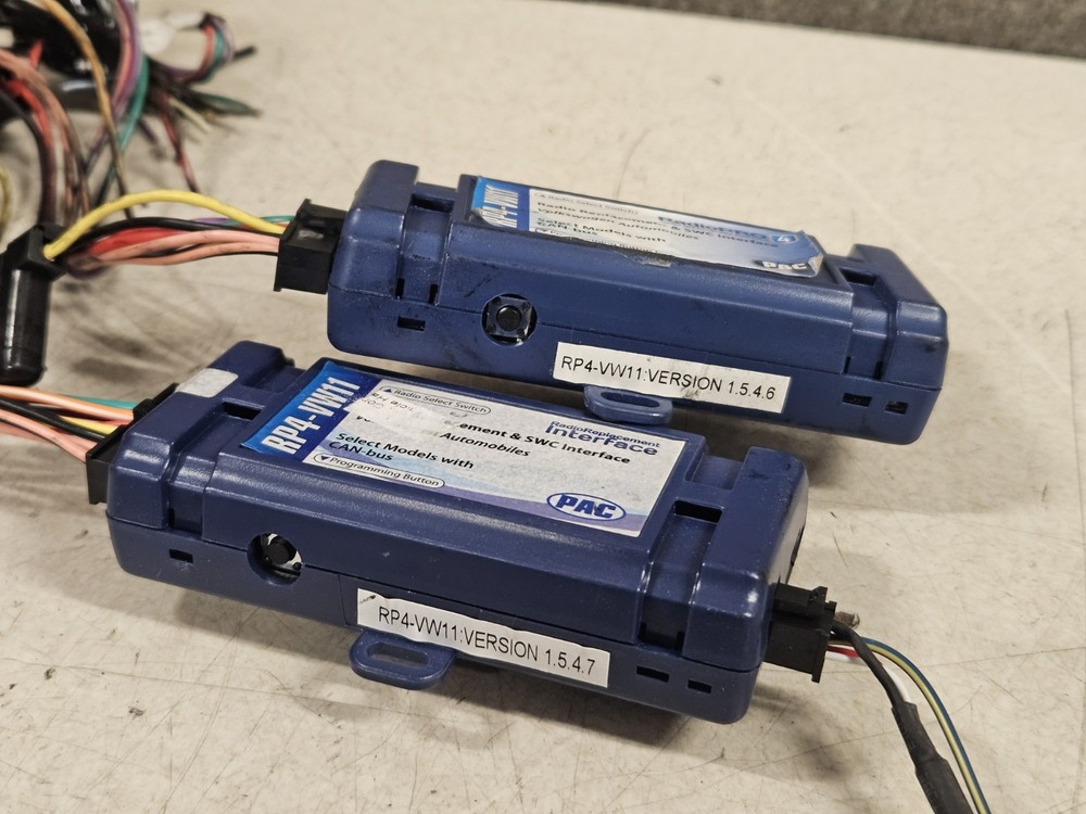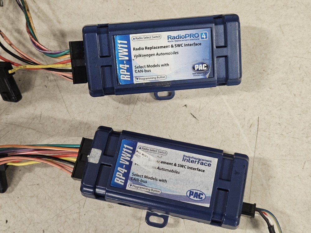 PAC RadioPRO 4 RP4-VW11 Volkswagen Radio Adapter Interface Wire Harness Lot of 5 Good used condition, removed from a various wrecked Volkswagen vehicles. Selling as a lot of 5. All harnesses have cut wires were the radio harness gets wired in. 4 out of 5 modules have the steering wheel control wire. You will receive exactly what is shown in photos. Please view all photos before purchase. Terms of Sale Items are inspected for any damage and tested to the best of our ability. Keep in mind many parts are removed from salvage vehicles and not able to be tested. Returns accepted for items damaged in shipping and electrical items that don't work as they should, but not for buyers remorse. Returned items are inspected for any tampering or missing pieces and buyers will be reported accordingly. IF YOU HAVE ANY PROBLEMS WITH YOUR ORDER PLEASE REACH OUT TO US BEFORE LEAVING A NEGATIVE FEEDBACK Shipping Information Most items will ship out same day or next business day shipping via FedEx Ground/Home Delivery or USPS Priority Mail. If you have any special shipping requests or inquiries please reach out before placing your order.