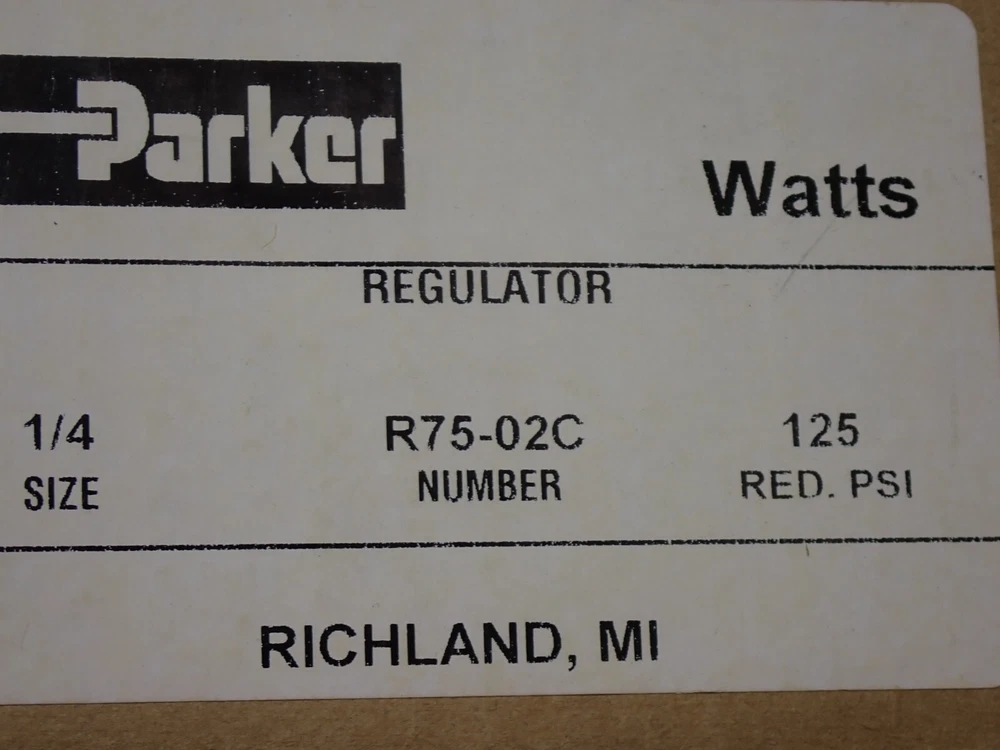 OFFERED IS THIS GENUINE NEW PARKER R75-02C AIR PRESSURE REGULATOR R7502C THIS CAN BE RETURNED AT OUR EXPENSE IF YOU ARENT SATISFIED WE OFFER FAST NEXT DAY SHIPPING VIA USPS, UPS OR FED-EX PLEASE ASK ANY NEEDED QUESTIONS