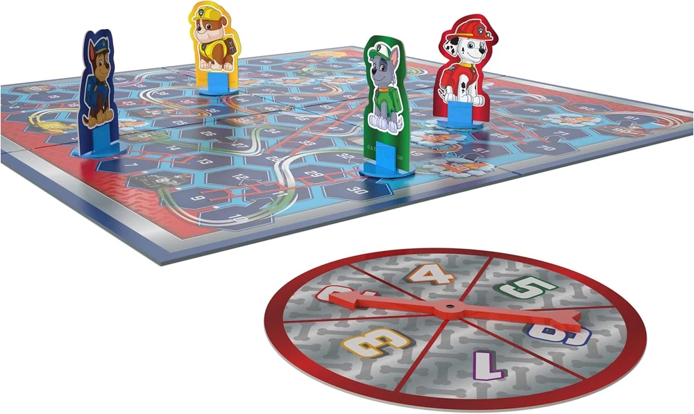 PUPS N LADDERS: In this exciting PAW Patrol game for kids ages 4-8, whichever pup is the first to complete the mission is the winner! A fun new PAW Patrol toy from Spin Master Games! FOR 2-4 PLAYERS: The pups are on a mission! They need to make their way to the top and land on the 100 spot. They’ll take some shortcuts by climbing up ladders, but those traffic cones will have them sliding back down. YOUR FAVORITE PAW PUPS: Featuring all your fave PAW Patrol pups from the Nickelodeon show including Chase, Marshall, Skye, Rubble, Zuma, Everest, and more! This board game for kids 4-6 is a fun game for family game night! HOLIDAY GIFTS: Make Thanksgiving, Friendsgiving & Christmas memories with gifts & stocking stuffers for everyone on your list. Find gifts for mom, gifts for dad, gifts for kids & gifts for family. SPIN MASTER TOYS & GAMES: Looking for kids games, yard games & card games for grown ups, kids or teen? Shop everything from family game night, travel games, puzzles for adults & family games. Includes: 1 Gameboard, 1 Punch Sheet (4 Movers and 1 Spinner), 4 Mover Stands, 1 Spinner Arrow (2 Parts), 1 Instruction Sheet Covered by the Spin Master Care Commitment. See below for full details Based on the mega-popular Nickelodeon show, play with the new PAW Patrol Pups N Ladders Game from Spin Master Games! For 2-4 players, this game is for everyone ages 4 and up. Playing is easy. The pups are on a mission! They need to make their way to the top and land on the 100 spot. They’ll take some shortcuts by climbing up ladders, but those traffic cones will have them sliding back down. Whichever pup is the first to complete the mission is the winner! This PAW Patrol game features all your favorite pups Chase, Marshall, Skye, Rubble, Zuma, Everest, and more! Whether you are looking for PAW Patrol toys for boys, 6 year old girl gifts, PAW Patrol games, or 5 year old boy toys, this entertaining Pups N Ladders Game makes the perfect present for birthday or the holidays. Turn on an episode of PAW Patrol, get out your new kids’ game, and have an exciting night of family fun!