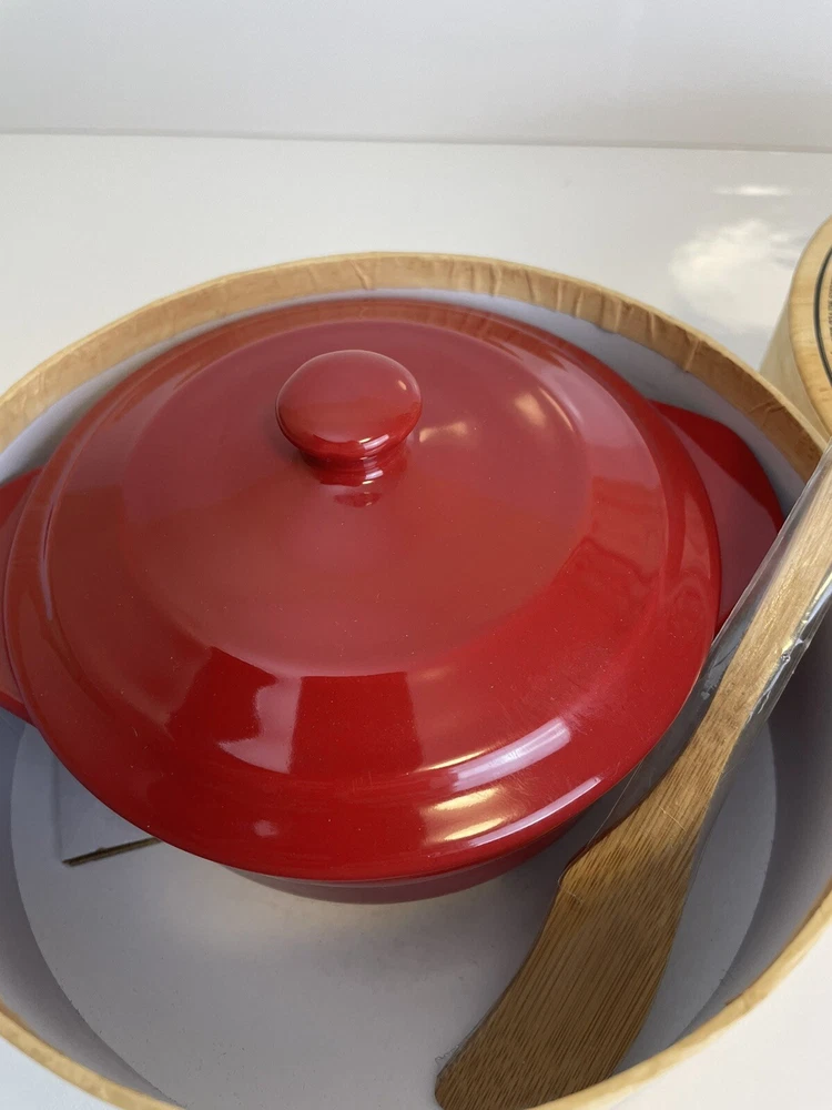 Introducing the Petit Maison Red Brie Cheese Baker Baking Dish - the perfect addition to your kitchen. This round-shaped ramekin is made of ceramic and is ovenproof, making it the ideal tool for baking and serving your favorite Brie cheese. With an item length of 7 inches, item depth of 2 inches, and item width of 5.5 inches, this baking dish is the perfect size for individual servings. The red color and ceramic surface coating add a touch of elegance to your table setting. The set includes one baking dish, making it a great gift for the cheese lover in your life. Elevate your cheese game with the Petit Maison Red Brie Cheese Baker Baking Dish.