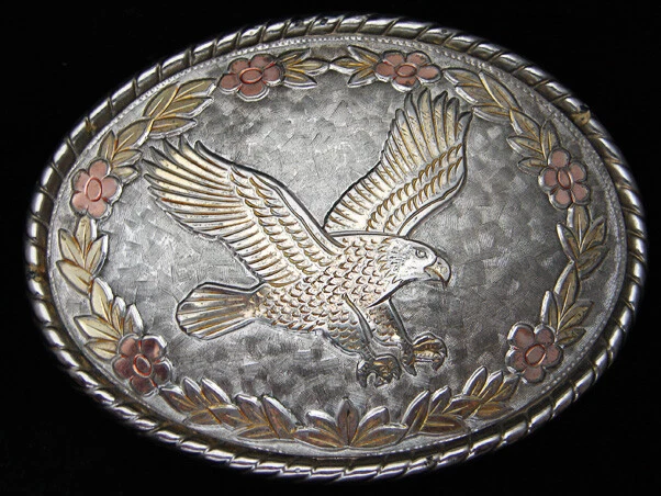 110916106 PK09106 VINTAGE 1970s **AMERICAN BALD EAGLE** WESTERN & COWBOY ROCKMOUNT BUCKLE REALLY GREAT BUCKLE ! Scroll Down For More Pictures (ad created with AdGen 16.5X. - posted by: GW) GENDER: UNISEX ERA: 1980s MAKER: ROCKMOUNT FINISH: SILVERTONE, COPPERTONE, GOLDTONE METAL * GREAT VINTAGE BUCKLE !! * PLEASE REFER TO PICTURES FOR MORE DETAILS & CONDITION COMMENTS: * GUARANTEED ORIGINAL VINTAGE ITEM !! MEASUREMENTS: 3.60" (9.1cm) Width 2.75" (7.0cm) Height 1.80" (4.6cm) Max. Belt Width Every item carefully hand measured! A GREAT ONE TO ADD TO YOUR COLLECTION !! **** IMPORTANT **** WE SELL VINTAGE ITEMS THAT MAY DETERIORATE OVER TIME. WE CAREFULLY INSPECT EACH ITEM AND TRY TO NOTE ANY VISIBLE FLAWS, BUT ARE NOT LIABLE FOR DAMAGE THAT OCCURS AFTER PURCHASE. ALL ITEMS ARE SOLD "AS IS" ONLY WITH NO WARRANTY OF ANY KIND EXPRESSED OR IMPLIED. Promotional Payment Information Payment Terms FULL PAYMENT REQUIRED WITHIN 5 DAYS OF PURCHASE! Payment Options Please see this site's payments section for available options. Shipping Information Shipping Rates U.S.A. CANADA OTHERS 1st Buckle $5.00 $12.00 $16.00 Additional Buckles $1.00ea. $2.00ea. $2.00ea. FREE U.S.A. SHIPPING ON 3 ITEMS OR MORE! FREE INTERNATIONAL SHIPPING ON 10 ITEMS OR MORE! EVERY PACKAGE NOW INSURED AGAINST LOSS OR BREAKAGE! All items shipped with a tracking # in order to comply with buyer/seller protection requirements. International Buyers *Import duties, taxes and charges are not included in the item price or shipping charges. These charges are the buyer's responsibility. *Please check with your country's customs office to determine what these additional costs will be prior to bidding/buying. *These charges are normally collected by the delivering freight (shipping) company or when you pick the item up. DO NOT confuse them for additional shipping charges. *We do not declare merchandise values below actual selling price. We also do not mark items as "gifts". U.S. and International government regulations prohibit such behavior. *Some countries customs clearance can delay arrival of your shipment up to 60 days! BEFORE BIDDING ON OR BUYING OUR ITEMS YOU MUST AGREE TO THE FOLLOWING TERMS: Buyer agrees to pay for item within 5 days of purchase. No returns accepted without prior authorization from seller. Shipping charges will not be refunded or reimbursed on returned items. ***** All items sold "AS IS" only ******