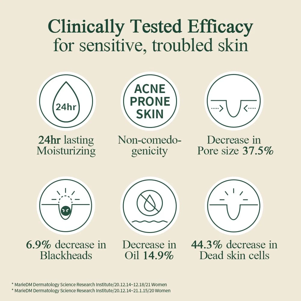[Long-lasting Hydration Cream for Sensitive Skin] 5types of cica instantly soothes irritated skin without stickiness, leaving it refreshed and calm with a highly moisturizing texture. [Clinically Proven Effects] Provides 24-hour hydration, reduces pore size by 37.5%, decreases blackheads by 6.9%, lowers oil content by 14.9%, and reduces sebum production by 44.3%. [Suitable for All Skin Types, Especially Sensitive and Troubled Skin] Non-comedogenic, Vegan, Zero Irritation. [Key ingredients] Cica & Madecassoside for Calming, Ceramaide for Skin Barrier, 5Hyaluronic Acids for Moisture [50-Year Philosophy] Skincare that focuses on fundamental causes rather than temporary effects, providing comfortable skin relaxation with minimal ingredients. Product Description Calming Skincare Line Add to Cart Add to Cart Add to Cart Add to Cart Add to Cart Add to Cart Add to Cart Customer Reviews 4.5 out of 5 stars 413 4.5 out of 5 stars 1,049 4.5 out of 5 stars 673 4.4 out of 5 stars 5,273 4.4 out of 5 stars 5,273 4.4 out of 5 stars 5,273 4.4 out of 5 stars 939 Price $15.99 $ 15 . 99 $15.43 $ 15 . 43 $19.99 $ 19 . 99 $15.99 $ 15 . 99 $15.99 $ 15 . 99 $15.99 $ 15 . 99 $14.90 $ 14 . 90 Key Benefits Mild deep cleansing Smooth skin texture Smooth skin texture Skin vitality Deep nutrition Intensive hydration Skin barrier Key Ingredients AHA, PHA, Centella Asiatica AHA, PHA, 5 Hyaluronic acid AHA, PHA, Madecasoside Madecasoside, Collagen Centella Asiatica, Peptide Madecasoside, Ceramide Centella Asiatica, Peptide When to use For cleansing skin After Cleansing Post-cleanse, Exfoliate After Serum, Dry After Serum, nourish After Serum, irritated After Toning Zero Irritation ✔ ✔ ✔ ✔ ✔ ✔ ✔ Vegan ✔ ✔ ✔ ✘ ✔ ✔ ✔