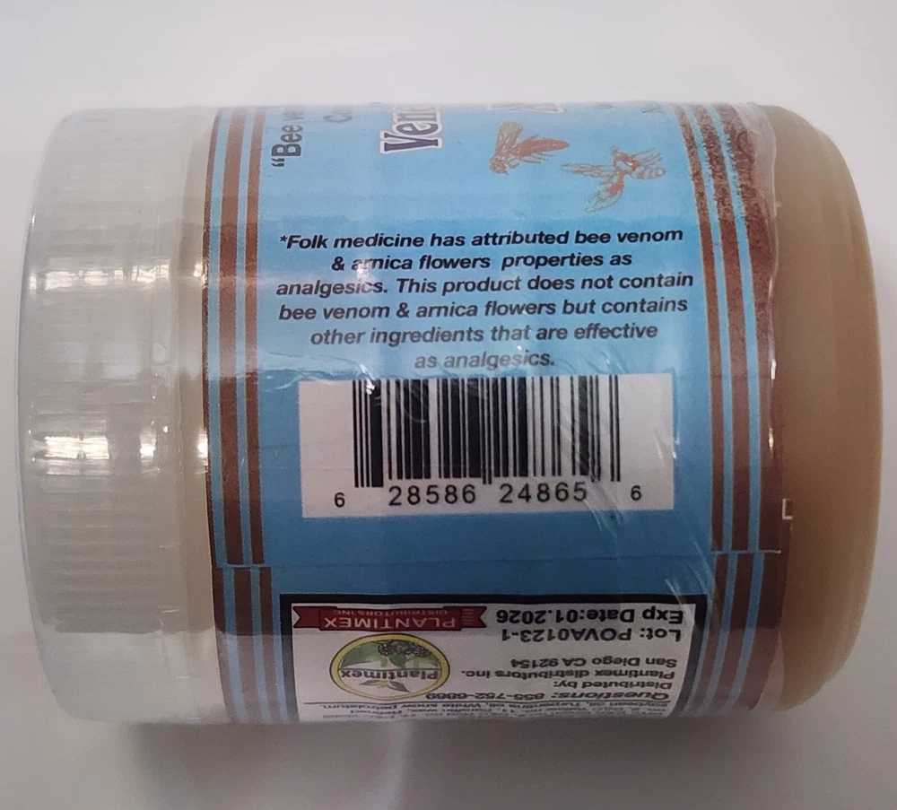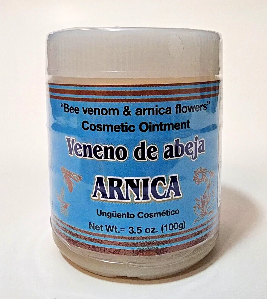 Bee Venom & Arnica Ointment 3.5 oz. each Support for Sprains Dislocations Cramps Support Free Shipping Adults Apply generously and gently massage into painful area until the product disappears. Repeat no more than 3 to 4 times day. 100% Original Product Thank you for your support and preference, I invite you to see my other sales items. Buy with confidence !!You shipments is 100% Guaranteed!! Pomada Veneno de Abeja con Arnica 100 grs Soporte para Esguinces Soporte Dislocaciones Calambres Envio Gratis Adultos Aplique generosamente y masajee suavemente en el área adolorida hasta que el producto desaparezca. Repita no más de 3 a 4 veces al día. P roducto 100% Original Muchas Gracias por su apoyo y preferencia, lo invito a mirar mis otros artículos de venta. Compre con confianza !!Su envío es 100% Garantizado!!