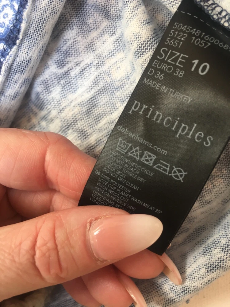 Gorgeous PRINCIPLES VEST TANK 10 Blue ditsy floral In good used condition TRUE GARMENT SIZING GUIDE Different clothing manufacturers size charts vary considerably, in order to help you get the correct size first time we include images of our garments laid flat on a table and indicated measurements with a tape measure. This will include seam to seam at the pit to pit and the length of the top from nape of neck to hem. We recommend that you compare this with a similar style garment that fits you well. POSTAGE We dispatch promptly within one working day of sale and offer same day dispatch to orders placed before 10am. Postage is free of charge however we also a premium postage upgrade of Royal Mail express for an additional cost please select this option when placing your order at check out.