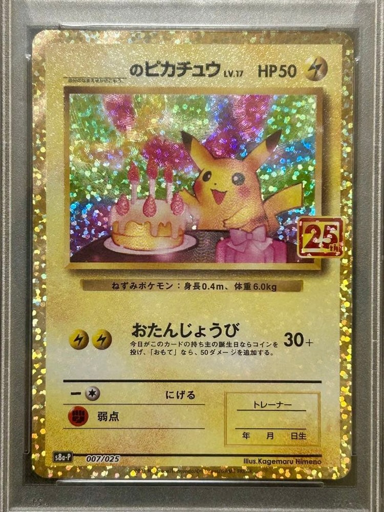 PSA10 Pokemon Card Birthday Pikachu 25th Anniversary Promo 007/025 Japanese 2021 Description Please check the attached images. If you have any question or request,please feel free to ask us. 【Attention US Buyers】 For this item, ☑ Import duties and fees are already included - No extra costs after checkout. ☑ No risk of customs delays. ☑ Safe and reliable delivery guaranteed. Shop with confidence at our store! Shipping (with tracking) Expedited shipping : FedEx or DHL About us 1 Our items are 100% authentic and shipped from Japan. 2 The items we deliver to you are exactly the same as the items on the photo on this item page. 3 We promise to pack up the item very carefully. We promise these three points. International Buyers - Please Note: Import duties, taxes, and charges are not included in the item price or shipping cost. These charges are the buyer's responsibility. Please check with your country's customs office to determine what these additional costs will be prior to bidding or buying.(excluding the US) Thank you for your understanding. {Title}
