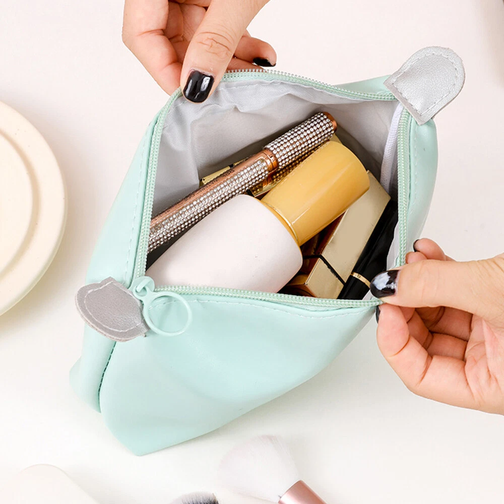 This makeup bag is a stylish and practical must-have! The PU material feels durable yet lightweight, perfect for travel or daily use. Love the range of colors—I got the light blue and it’s even prettier in person. Spacious enough to hold all my essentials without being bulky. The size is just right for tossing in my purse or suitcase. Great quality for the price; highly recommend for anyone needing a cute, functional storage solution!