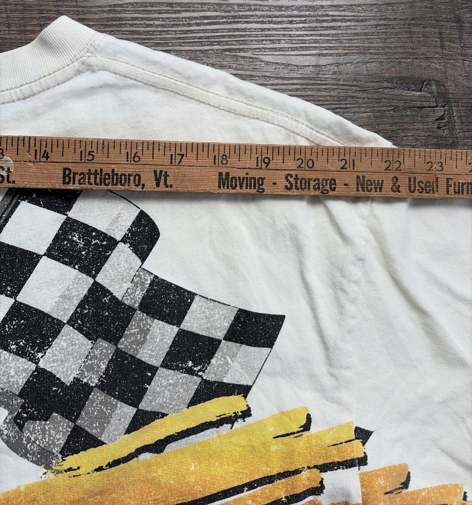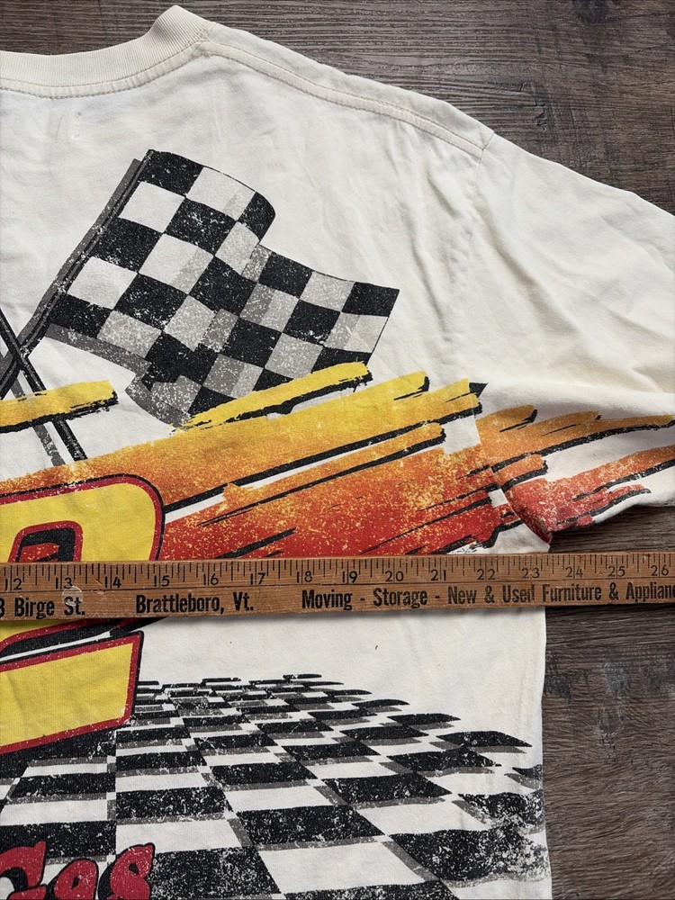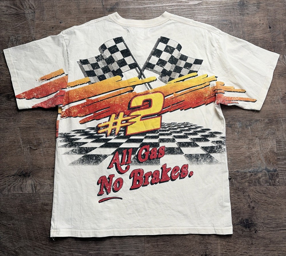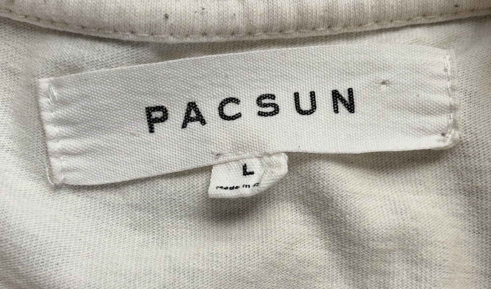 This cream-colored men's shirt features a graphic print of a speedway racing design, perfect for those who enjoy cars and racing. Made of cotton, the shirt has short sleeves and a crew neck, making it ideal for the summer season. The size is a regular L, and it is machine washable for easy care. With the brand PacSun behind it, this T-shirt is a stylish choice for men who want to make a statement with their clothing.
