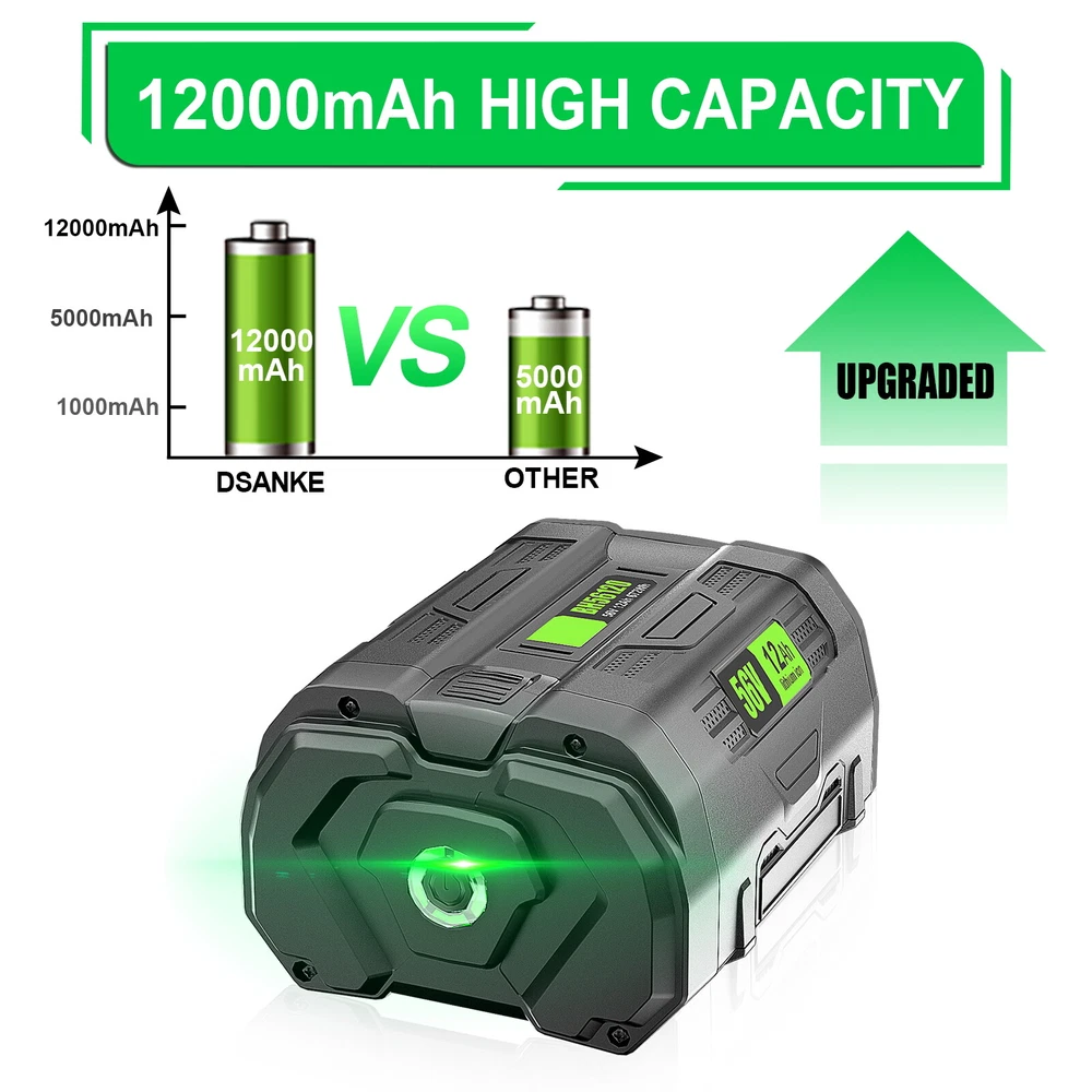 Message Us Click to Menu Product Description Features ✔【Battery Specifications】 Type: Lithium-ion | Voltage: 56V | Capacity: 12000mAh | ,Perfectly compatible with original tools to help you complete work. ✔【100% Compatible】 Replacement for EGO 56V BA2800 BA2800T BA4200 BA4200T BA1400 BA1400T BA5600T BA2240 BA1120 Battery, 100% Compatible with EGO 56V CS1604 CS1804 CS1403 HT2400 LB6504 LB5804 LB6500 LB4800 HTA2000 STA1500 PH1400 PSA1000 Tools,Perfect fit all EGO 56V Chargers and 56V Tools. ✔【Why Choose Us?】 Built-in ECP smart protection chip provide overcharge and overdischarge protection to extend 5X battery life.avoid excessive use and improve working life.Use A-class Lithium-ion Cells to make the battery charge and discharge cycles >1000 times!! ✔【Safety & Reliable】 All of the products are CE FCC PSE ROHS certified, tested by manufacturer to match OEM products and exported all around the world.No memory effect, can be charged or discharged as needed without losing capacity. ✔【Smart LED Power Indicator】 Installed with a smart 5-LED power indicator, and the conspicuous green light helps to check the power more conveniently. Also, an external waterproof shell prevents water from seeping in. Allows you to quickly check the power with one click even when your hands are wet. Specifications Brand: DSANKE Battery Voltage: 56 V Battery Type: Lithium-ion (Li-Ion) Capacity: 12000mAh / 12 Ah Color: Black Condition: Replacement Battery, Brand New Compatible Brand: For E.G.O Warranty: 5 Years Warranty + 60 Days Money Back Shipping: Free shipping,24H Dispatch,1-6 days delivery Certificate: CE PSE ROHS FCC Perfect Replace for EGO 56V Lithium-ion Battery PN: BA2800 BA2800T BA4200 BA4200T BA1400 BA1400T BA5600T BA2240 BA1120 100% Compatible with EGO 56V Charger: CH2100 / CH7000 / CH2800D / CH5500 Fit for EGO Nexus Portable Power Station PST3040/PST3041/PST3042 100% Compatible with EGO 56V Tools: LB6504 LB5804 LB6003 LB5302 ST1502LB LB4803 LB6500 LB6000 LBX6000 LB5800 LB5300 LB4800 SNT2405 SNT2103 SNT2400 SNT2100 CS1604 CS1804 CS1800 CS1600 CS1400 CS1403 ST1500XY STA1500 HT2411 HT2410 HT2400 HTA2000 HTX6500 LM2021 LM2130 LM2100 LM2135SP LM2133 LM2102SP LM2142SP LM2022SP LM2130SP LM2100SP LM2020SP LM2101 ST1521S ST1524 ST1511S ST1502SA ST1502LB ST1502XY ST1504SF ST1520S PH1400 PSA1000 ST1500SF Fit for EGO blower (such as the model LBX1000), but not support the full power or turbo mode, only work with the low, and medium speed, please note. Package Included 1~2x 12Ah 56V MAX replacement Lithium Ion Battery for EGO Manual Maintenance of Battery: 1.If you don't plan on using the Power Tool Battery for a month or more, store it in a clean, dry, cool place away from heat and metal objects, usually Ni-CD, Ni-MH and Li-ion batteries will self-discharge during storage. Remember to recharge the batteries before use. 2.Do not leave the battery dormant for long periods of time. We recommend using the battery at least once every two to three weeks. 3.Always remove battery pack form your tool when you are assembling parts, making adjustments, cleaning, or when not being used for an extended time. Need Help? Don't Know Your Power Tool or Battery Model? Follow These Quick & Easy Steps... **Remove the battery, usually located on the underside or back of the power tool,and look on the battery for the model number. If no model number is found: Look on the underside of the power tool where the serial number is and locate the model number of the power tool. If you need a part for your model that is not listed above, please email us via ebay message. Our customer service professional may be able to find the product or information that you are looking for or help you refine your search. Delivery Returns Warranty Contact How much is Shipping? Shipping is FREE, United States wide Do you ship internationally? Sorry we do not ship internationally, we only ship to United States. How do you ship items? We use USPS / UPS to process shipments. How long will it take before my order ships? You should expect to receive your order in 7-10 business days. We aim to deliver faster than this, so you may receive your product sooner. Please ensure you provide us with the correct delivery address. Please note that we are not responsible for wrong or undeliverable address.Please ensure someone is available to sign the delivery to avoid delays. Can I pick up my order? Sorry, we do not provide pick up facilities. Is tracking available for my order? Yes, all orders are shipped with a tracking number and can be tracked on the USPS / UPS website.. All items require a signature for delivery. What are your delivery times? Deliveries are made Monday to Friday, 9am - 5pm. Please note that we cannot schedule deliveries with our drivers, as we cannot control freight once it has left our premises. If you are not home, we will be advising that your item will be available for pickup either at your local USPS Post Office, or local USPS depot. Can I return an item? Yes, there are certain situations in which we allow returns, for example : Faulty items, incorrect item sent. Faulty items MUST be reported to us via ebay messages How do I request a return? Returns are only possible when an RMA number has been provided to you. If you have a faulty item: Please message us via eBay Messages us via eBay messages and indicate your order number/eBay item number/eBay User ID as well as the details of the item that you received in error. We will then advise you on how a replacement will be sent. Please note we MUST have provided you an RA/Incident number for you to return an item. If you change your mind: Please choose your item carefully as we do not accept returns just because you changed your mind. How the terms of sales? 1.It is our goal to provide our customer 100% satisfaction. 2. 60 Days Money Back Guarantee and Full Five Years Limited Warranty from the date of original purchase. 3.Product should be returned with original packages and mu