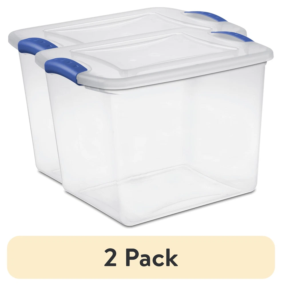 The 27-quart Latch Box is ideal for safely storing a variety of items. It features secure latches that keep the lid attached to the base, and the clear base and lid allow contents to be easily identified from any angle. This latch box fits conveniently on 16" wire closet shelving, making it ideal for organizing and storing sweaters, T-shirts, large craft items, books and more. The contemporary styling and shape provide solutions in many rooms of your home, office or classroom. Use it to store hats, gloves and scarves, photos or collectibles, shoes, blankets, toys and anything else you need put away. Size: 16-1/2"L x 13"W x 12-1/4"H Clear lid and base for easy identification of the contents from any angle Contemporary styling and shape to provide solutions to a variety of household storage needs Colorful latches secure the lid to the base, keeping contents safely stored inside Indexed lids allow for storage boxes to stack neatly on one another atch box, 2 pieces