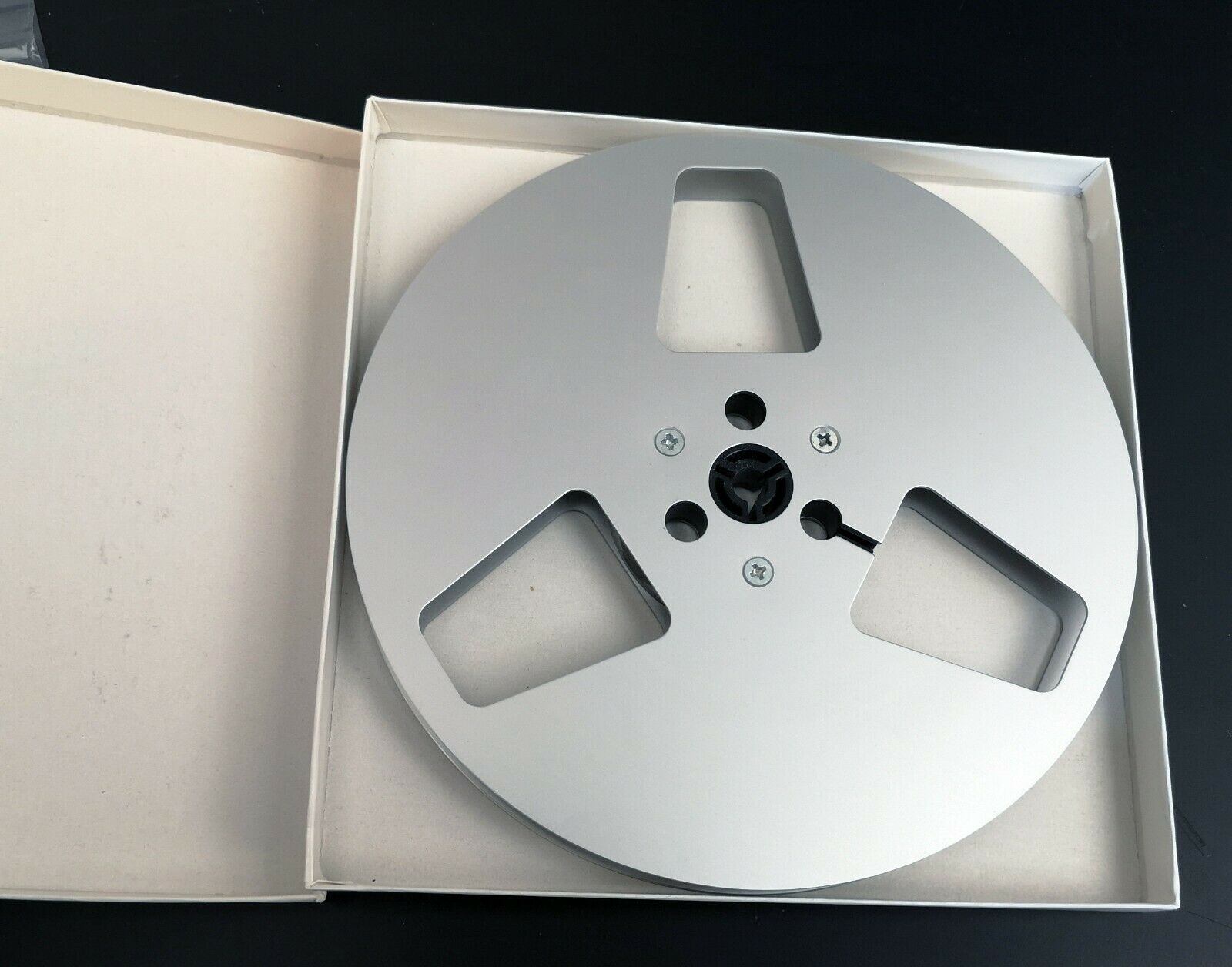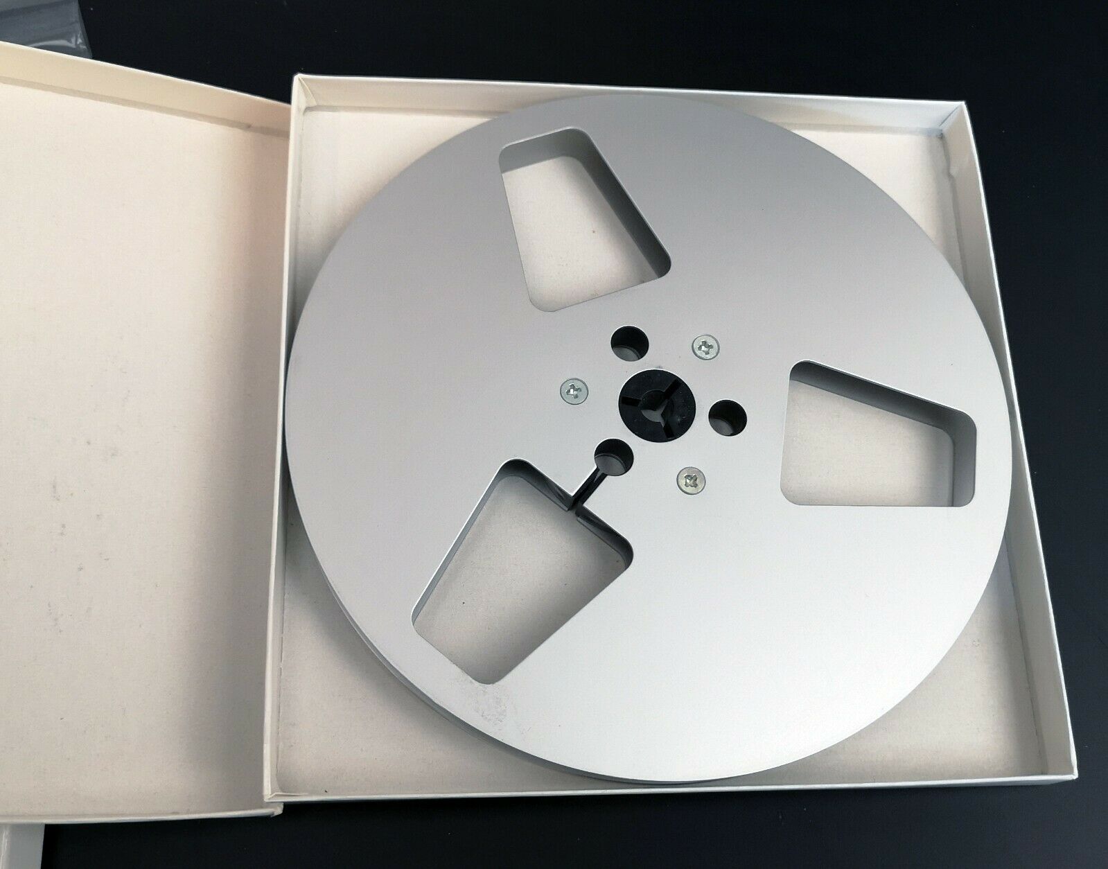 Untitled Document MEISTER Pair of Near 7-inch Metal take up reels in original box - Rare in this condition. These are light and strong Both reels spin true and there are no edge nicks - NM