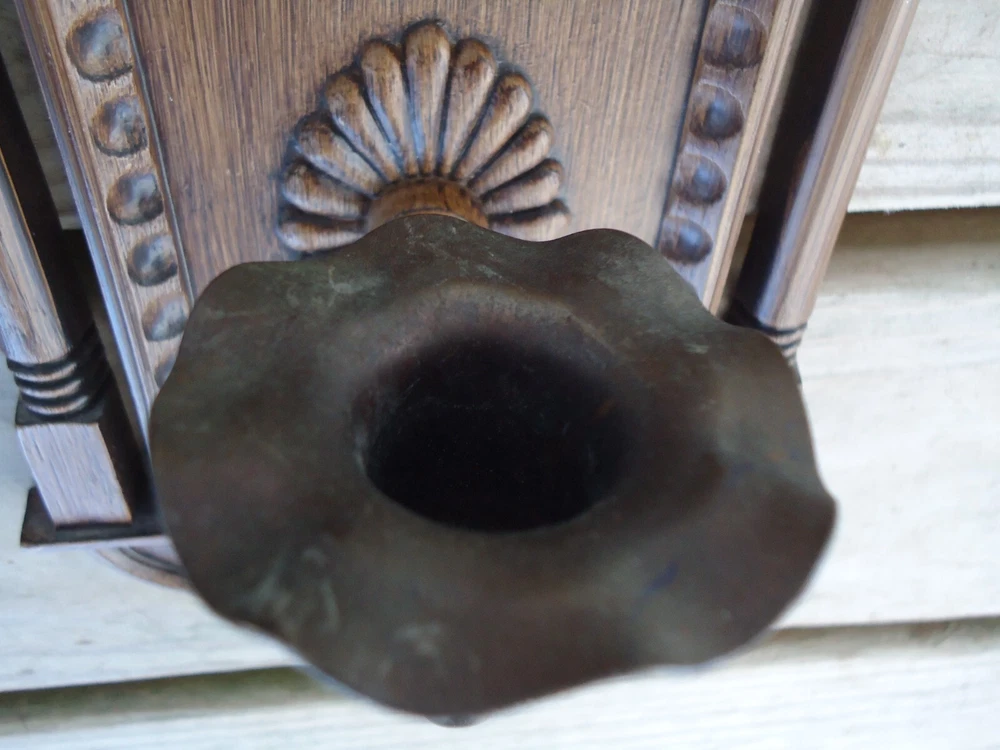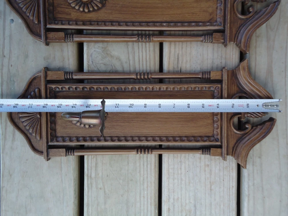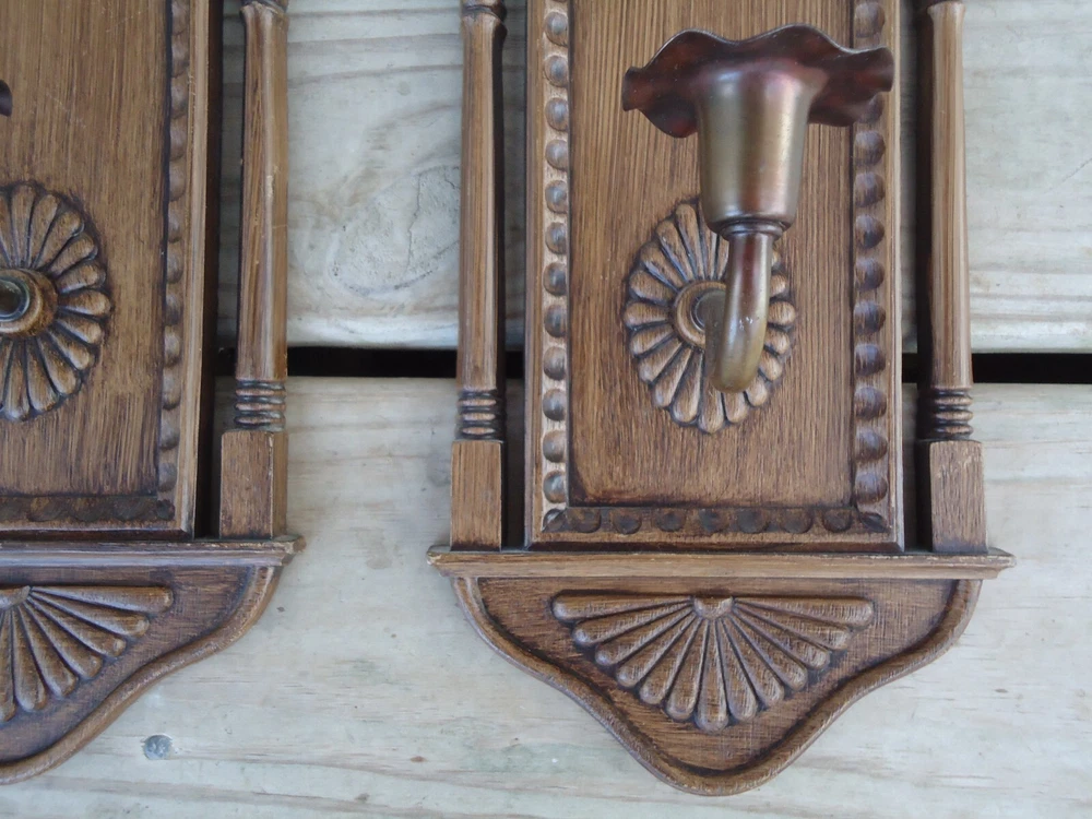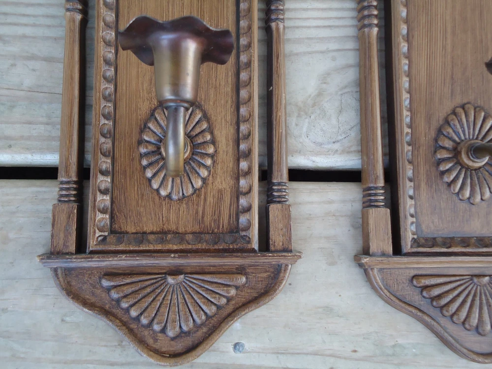 Pair VTG Wall Sconce Candle Holder Hanging Decoration Faux Wood 70s Library Hall Approximately 18.5 tall x 6.5 inches wide