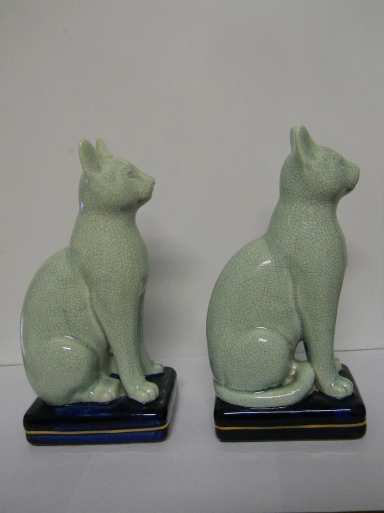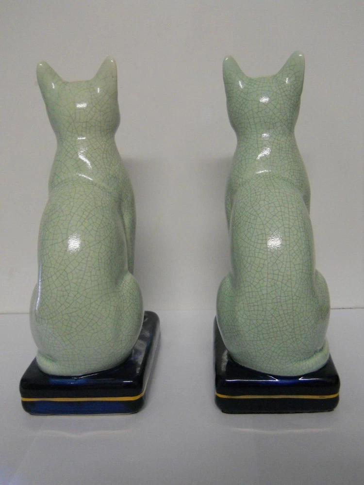You are bidding on: Pair of Vintage Japanese Ceramic Staffordshire Style Cats by Ibrasco Japan Description Condition: In vintage condition. This is a Pair of Vintage Japanese Ceramic Staffordshire Style Cats by Ibrasco Japan These cats stand at 8" tall. The bases measure 3" x 4" These are made in Japan ***************************************************************************************************** PLEASE READ: I buy mostly estates, close outs, shelf pulls, and auction items. As the history of the item is not always known. I will describe all of my items listed to the best of my ability, if there are any flaws to the item it will be noted in the listing and photos of the flaw shown. At times I may miss a flaw, as I am only human. Please contact me and I will make it right and make sure that you are happy with you interaction and purchase from Big Man Tim. See photos for details and ask all questions before purchasing. "FREE SHIPPING" Thank you for shopping in my store. Check out the other items in my eBay Store! HAPPY BIDDING 050324/TM warehouse