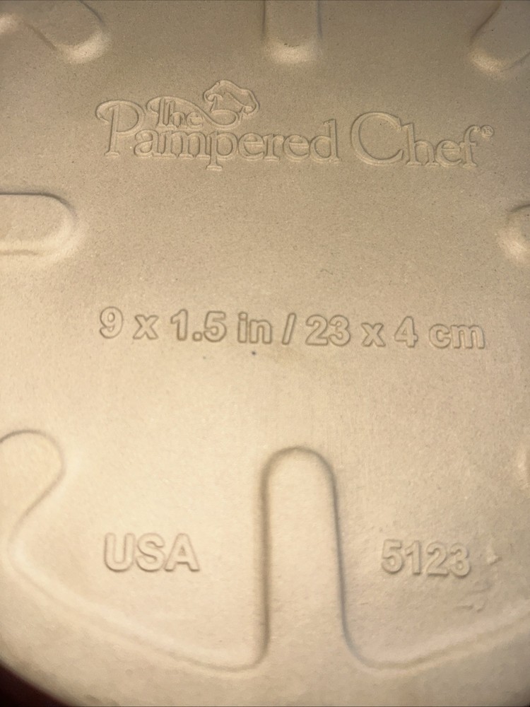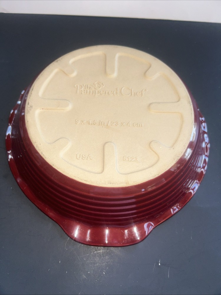 The Pampered Chef Family Heritage 9" Deep Dish Stoneware Pie Plate in Cranberry is a high-quality ceramic pie dish that features a vibrant cranberry color. With its round shape and ceramic surface coating, this pie plate is perfect for baking delicious homemade pies. The Pampered Chef brand ensures durability and even heat distribution for consistent baking results every time. Whether you are a collector of vintage cookware or simply looking for a reliable pie dish for your kitchen, this deep dish stoneware pie plate is a must-have addition to your bakeware collection. kn528