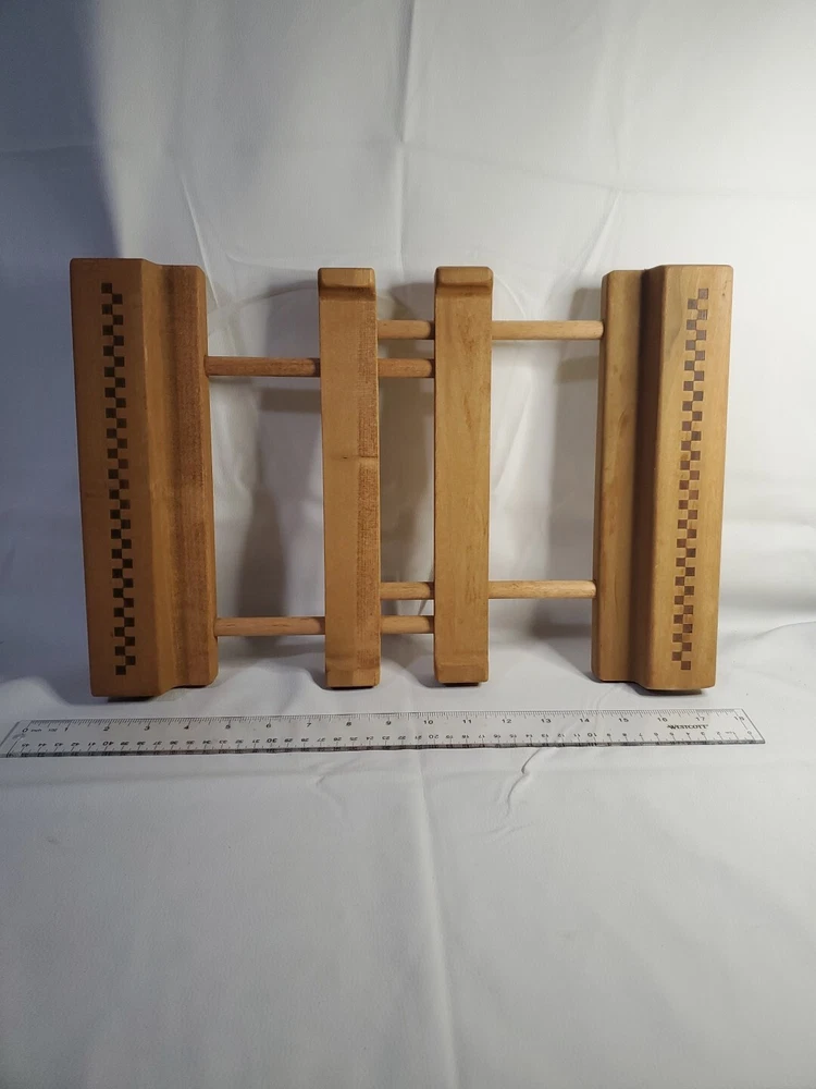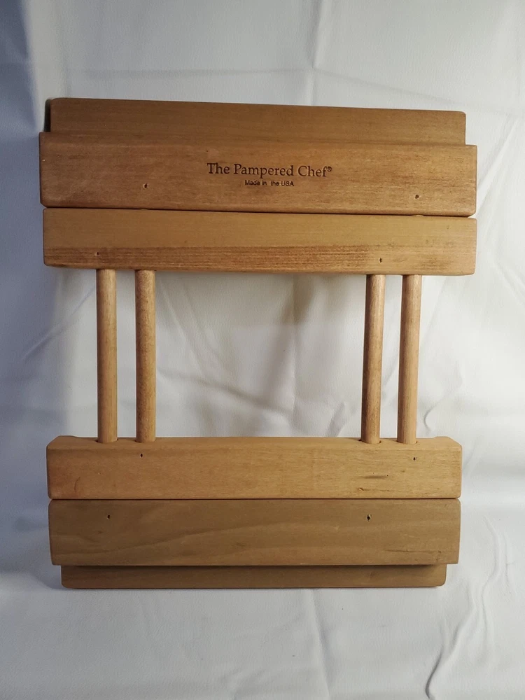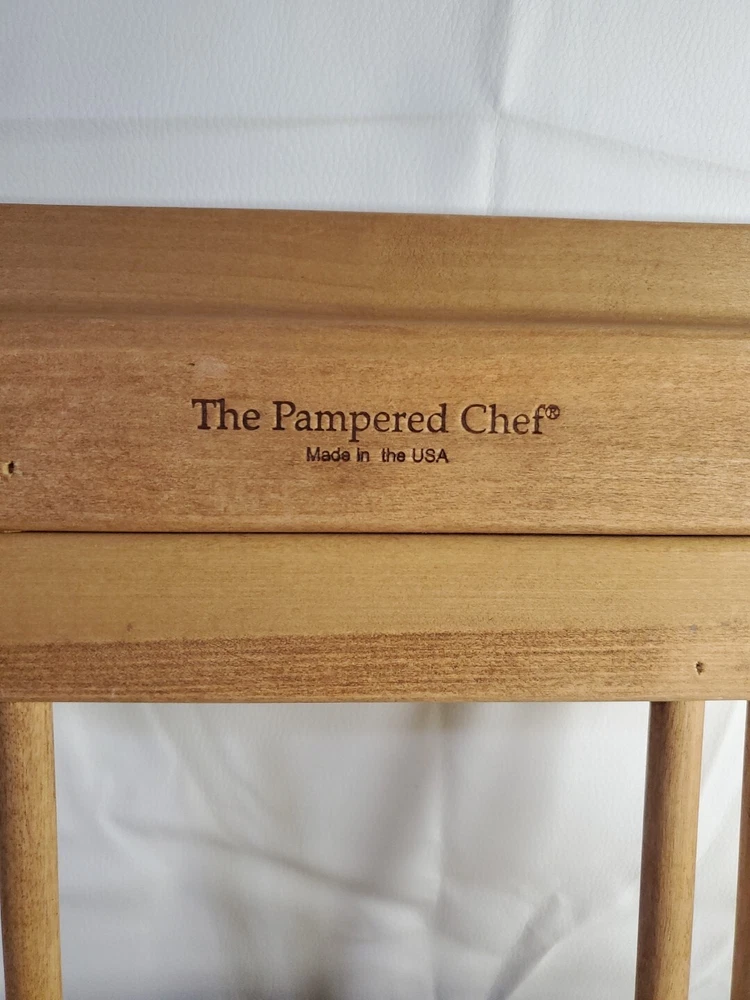 This Pampered Chef wooden trivet is an essential addition to your kitchen. Designed for holding hot casserole dishes, it is made of high-quality stoneware that ensures durability and longevity. The expandable design allows for easy storage and use, while the traditional style adds a touch of elegance to your dining table. Crafted in the United States, this trivet is a must-have for any home cook. The brand name Pampered Chef is synonymous with quality and this product is no exception. With its non-modified design, you can be assured that you are getting a product that is safe and reliable. Slides easily like it should. Please see all photos for details and condition.