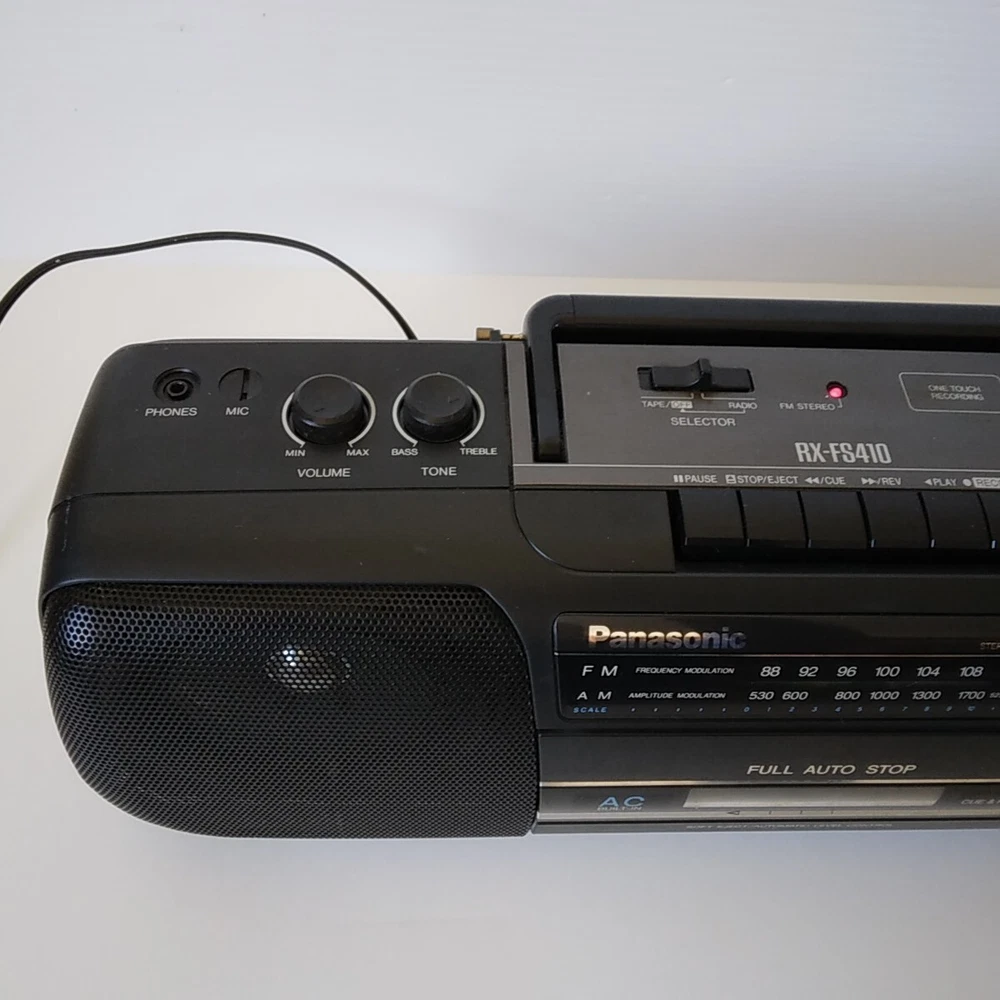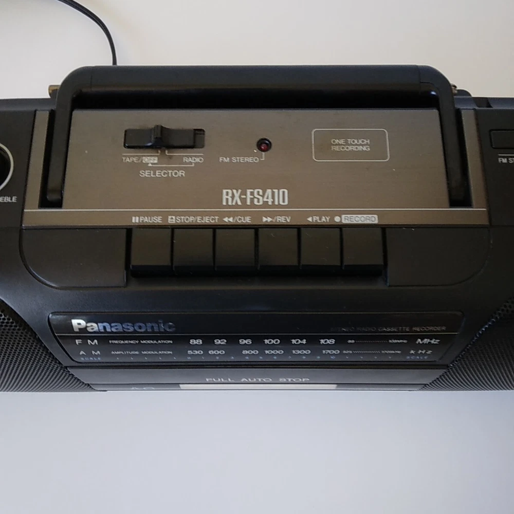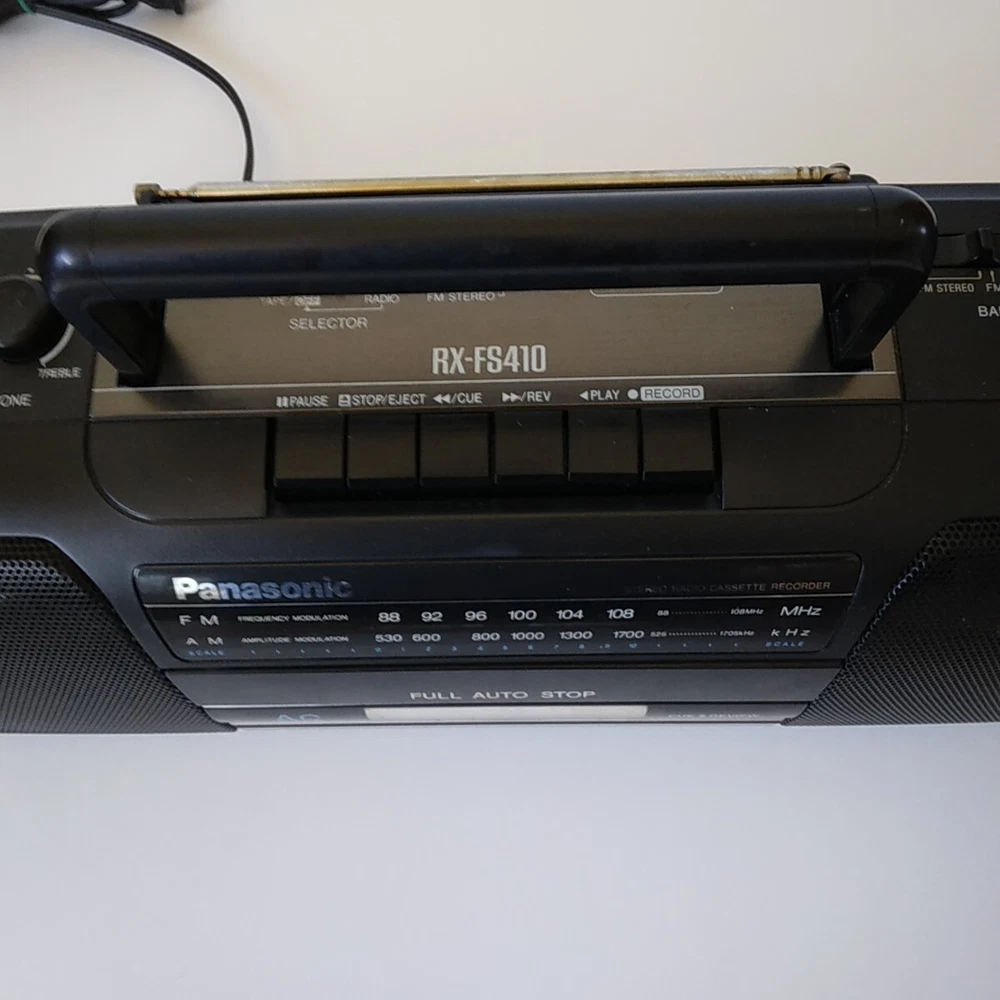 Panasonic RX-FS410 Cassette Tape player-Radio, With Cord, Tested Working. This boombox has been tested on all functions and works well. All cassette functions work great including reverse, fast forward, and record. In very good overall cosmetic condition. Has a few small scratches. See pictures for a detailed look. Will ship well protected. Thanks for the interest.