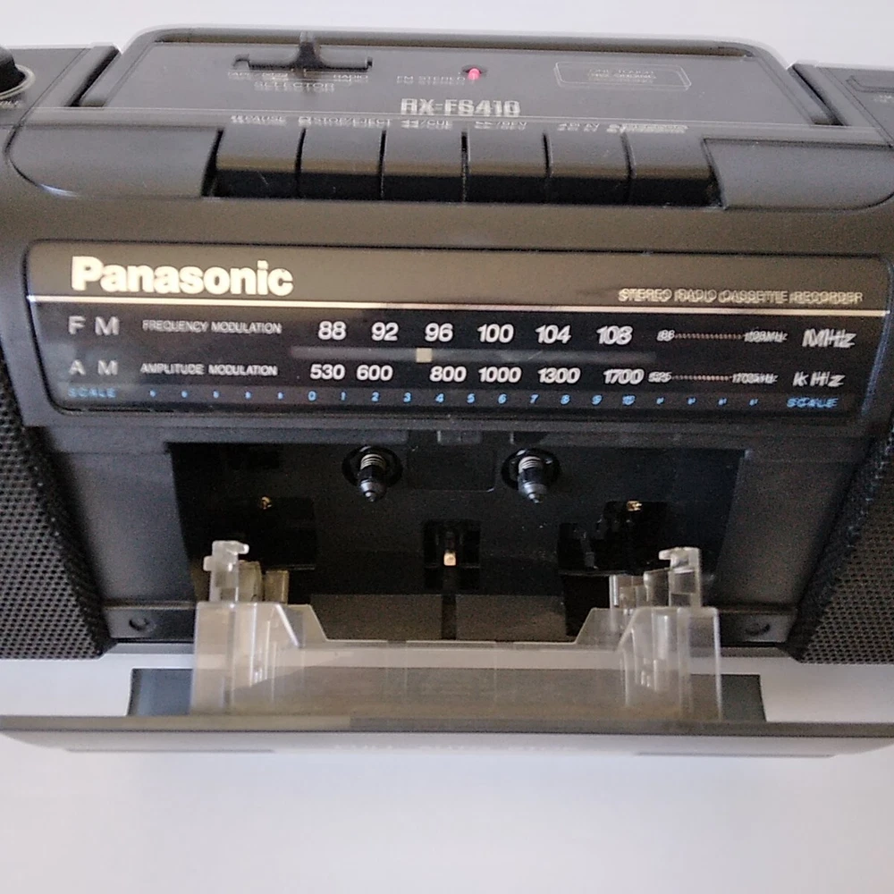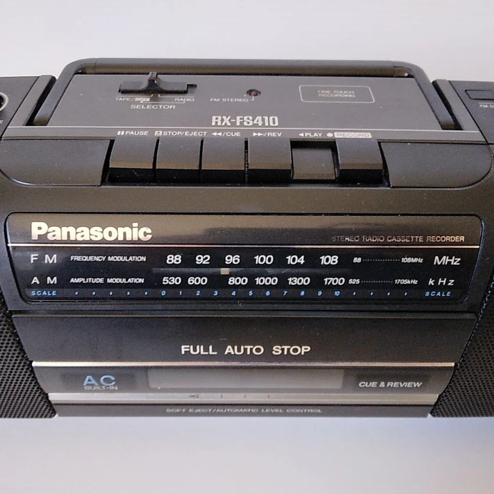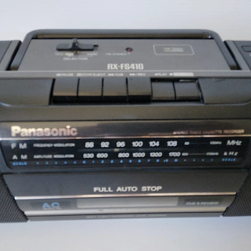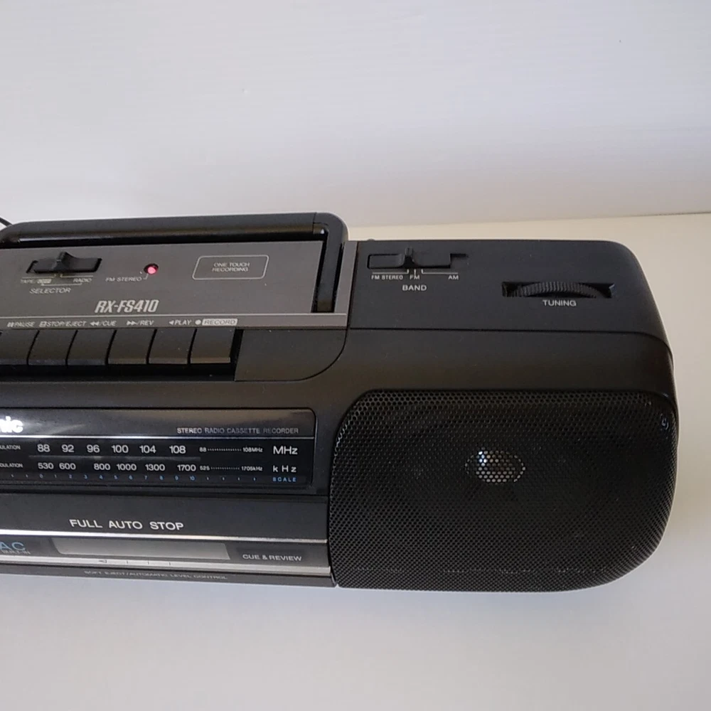 Panasonic RX-FS410 Cassette Tape player-Radio, With Cord, Tested Working. This boombox has been tested on all functions and works well. All cassette functions work great including reverse, fast forward, and record. In very good overall cosmetic condition. Has a few small scratches. See pictures for a detailed look. Will ship well protected. Thanks for the interest.