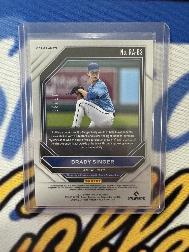 Card Number: RABS-3549 Features: Memorabilia, Rookie Autographed: Yes Parallel/Variety: Prizm Team: Kansas City Royals Player/Athlete: Brady Singer Card Thickness: 20 Point Original/Licensed Reprint: Original Manufacturer: Panini Type: Sports Trading Card Season: 2020-21 League: Major League (MLB) Sport: Baseball