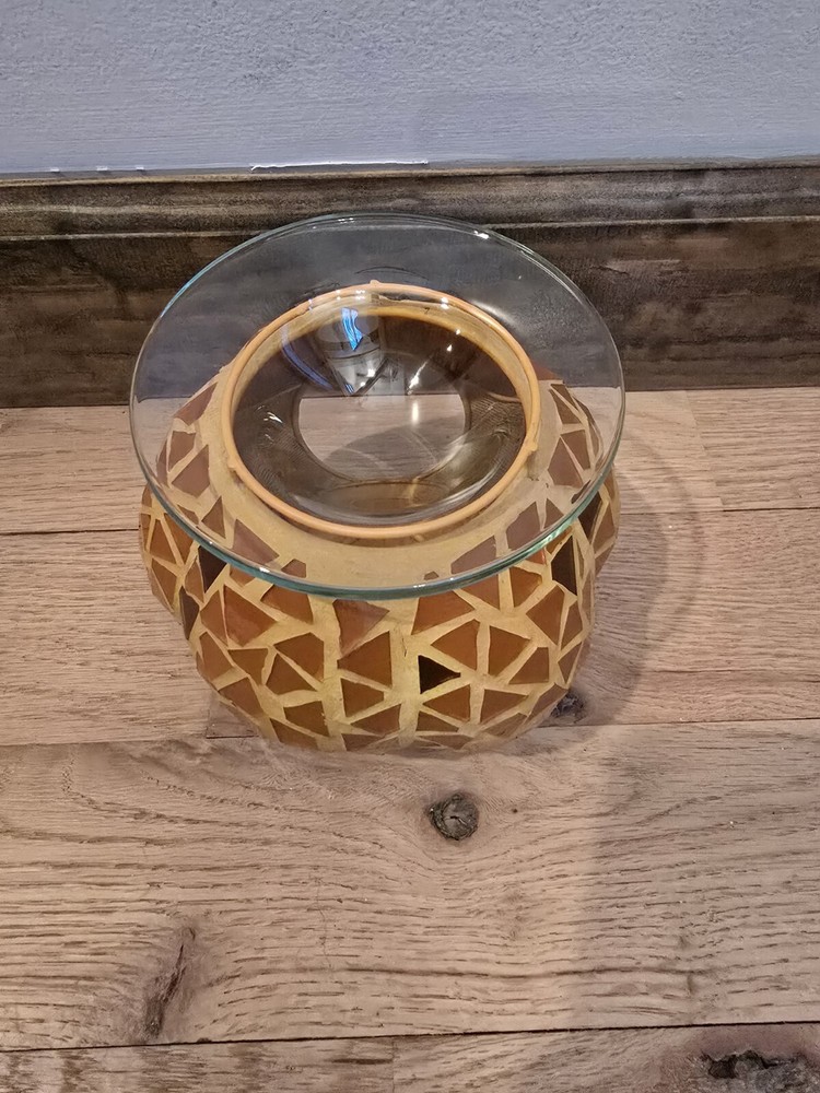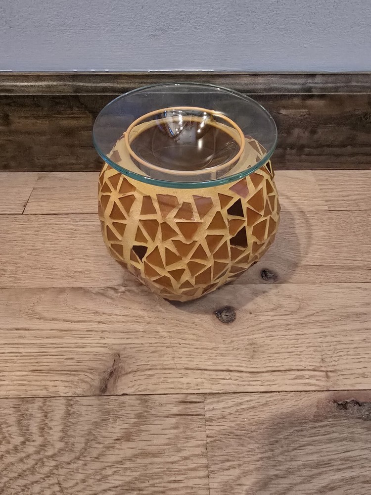 The PartyLite Pumpkin Aroma Melts Warmer is a decorative candle holder designed for use with aroma melts. With its pumpkin design, this candle holder adds a festive touch to any space while also providing a way to enjoy your favorite scents. Perfect for creating a cozy atmosphere during the fall season or any time of year, this candle holder is both functional and stylish, making it a great addition to any collection of decorative collectibles.