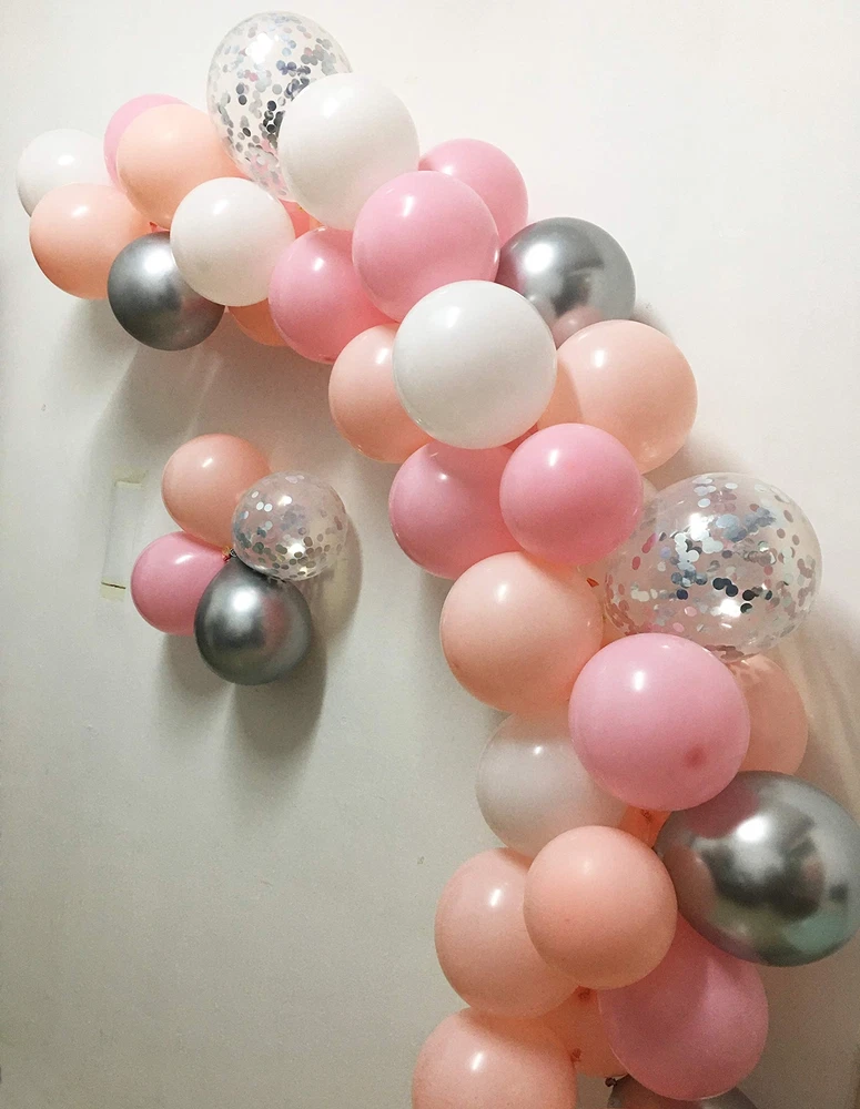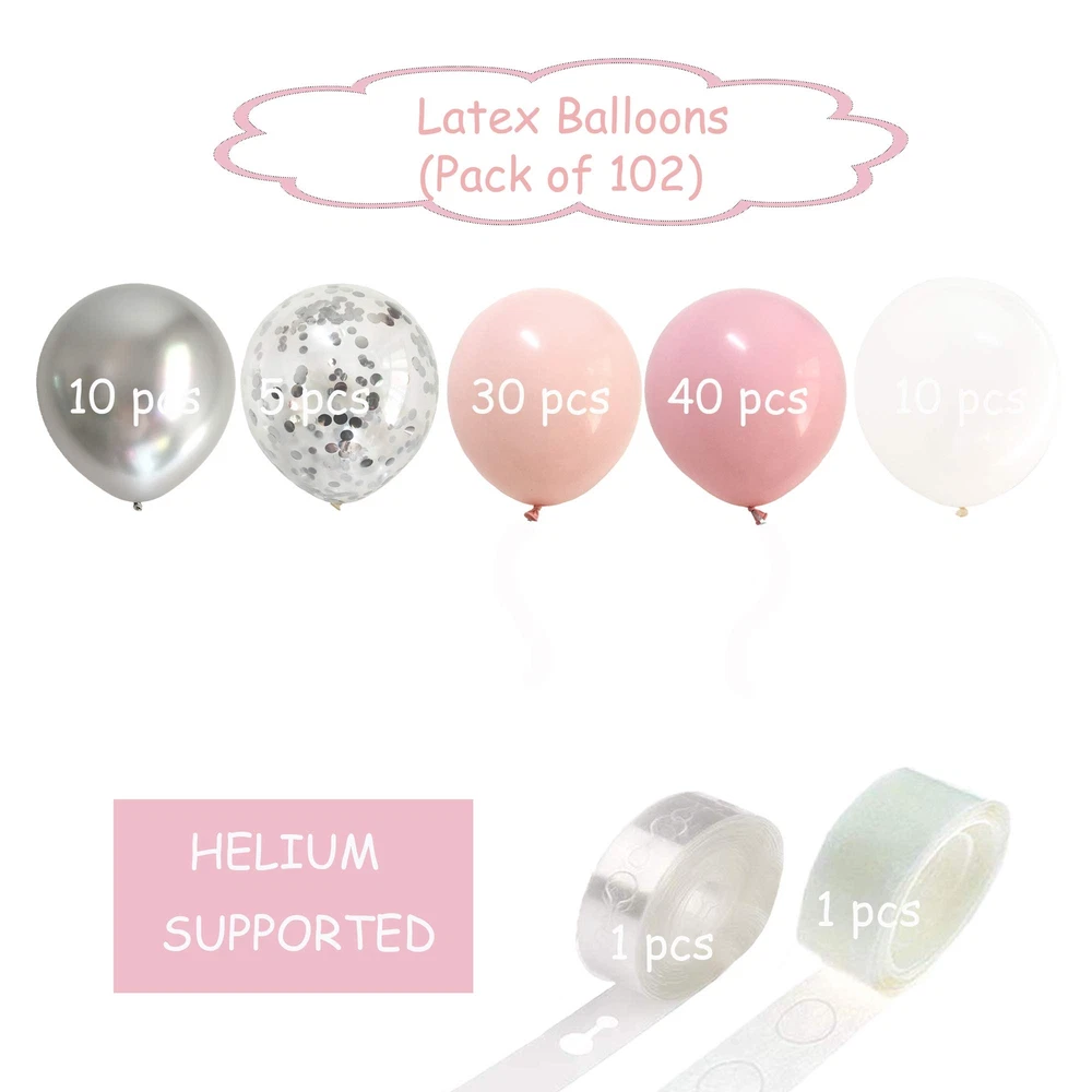Pastel Pink Silver Balloon Garland -Blush Pink Metallic Chrome Silver Confetti Balloons Arch Kit for Girl Baby Shower Party Decorations Supplies Pastel Pink Silver Balloon Garland –Blush Pink Metallic Chrome Silver Confetti Balloons Arch Kit with Strip Dot Glue for Baptism Girl Baby Shower 1st Birthday Party Centerpiece Backdrop Decorations Supplies 【What Include】Assorted 10inch and 12inch latex balloons 100pack –Baby Pink 10inch 40pieces, Blush Pink 12inch 30pieces, White 10inch 15pieces, Chrome Metallic Silver 12inch 10pieces, Confetti Silver 12inch 5pieces, 1 roll balloon stick and 1 roll 5meter Balloon Strip , Total 102packs 【Awesome Color Combination】- Blush Pink Pastel Pink Chrome Metallic Silver + Confetti Silver + Latex White 5 different colors coordinate , it makes gorgeous 【Confetti balloons instruction】-You can inflate the balloon with helium or air, shake the balloon and then rub the balloon by towel all over, let confetti stick on the side of balloons 【Adorable party Garland】-This balloons kit suit for baby shower boy, First baby Birthday Decoration, Promotion Anniversary Baby Shop, Photo Shoots 【Warm Tips】Balloon Garland just filled with air ,not helium ,it is easy to save your time and money , the balloon garland could stand by itself ,it need rely on the wall or stairs through hook or tape Shipping from the USA All of our products are shipped from the USA, ensuring quick delivery to your destination. Payment We offer the following payment methods: PayPal, credit card, bank transfer, and eBay's secure payment system. Free Shipping & Free Returns Shipping within the USA is FREE. Additionally, any return is absolutely free for you. Risk-Free Purchase You have the option to return an item within 30 days without any justification. We cover the return shipping costs! Fast Shipping We ship immediately upon receipt of payment. Generally, the package is delivered within 2-3 days in the USA. If it takes longer, we will contact you. Quality and Costs Made in Europe, USA, China No customs fees or additional charges Total satisfaction guarantee Invoice with declared VAT available upon request in .pdf format Feedback Your feedback is very important to us. After you pay for your purchase, you will automatically receive positive feedback from us.