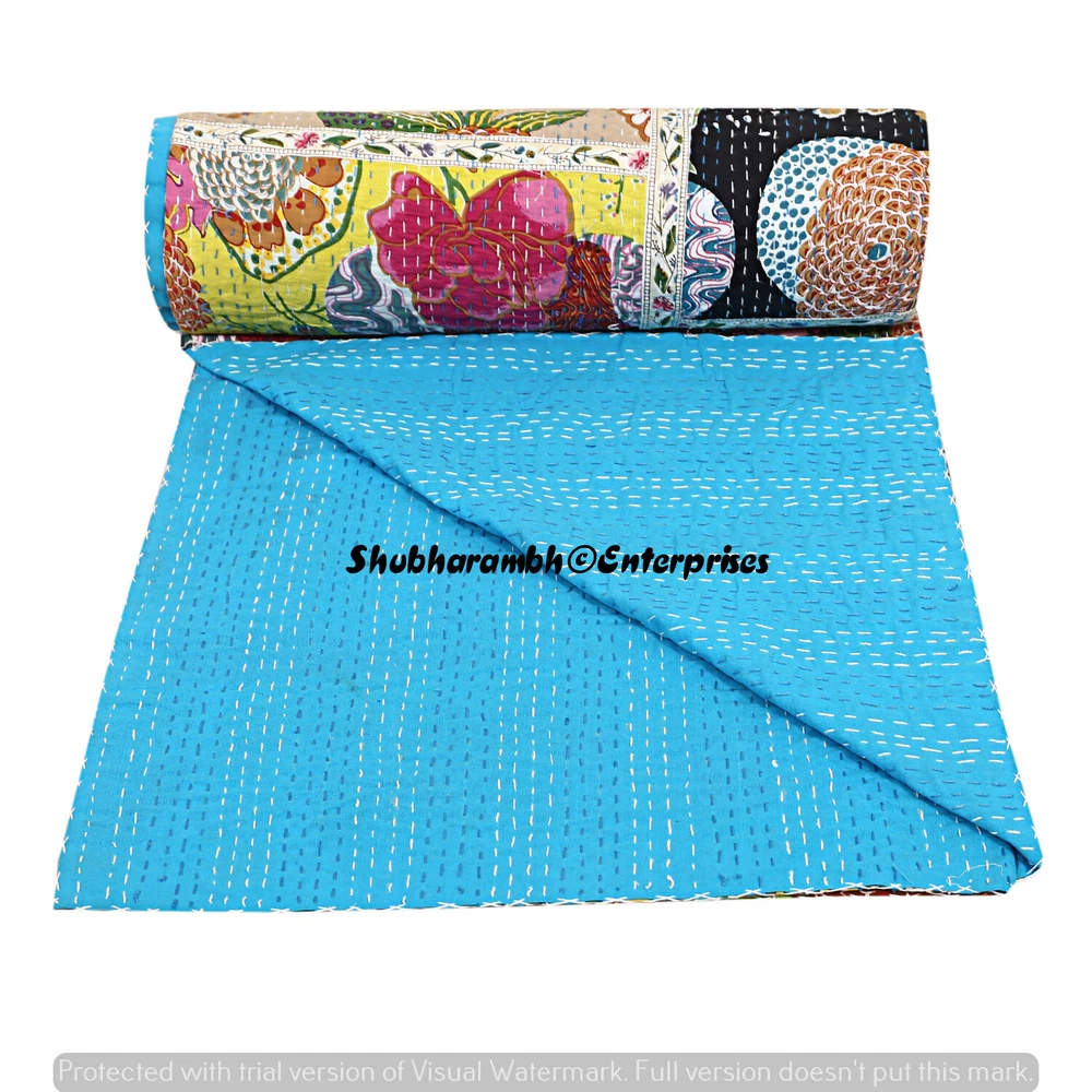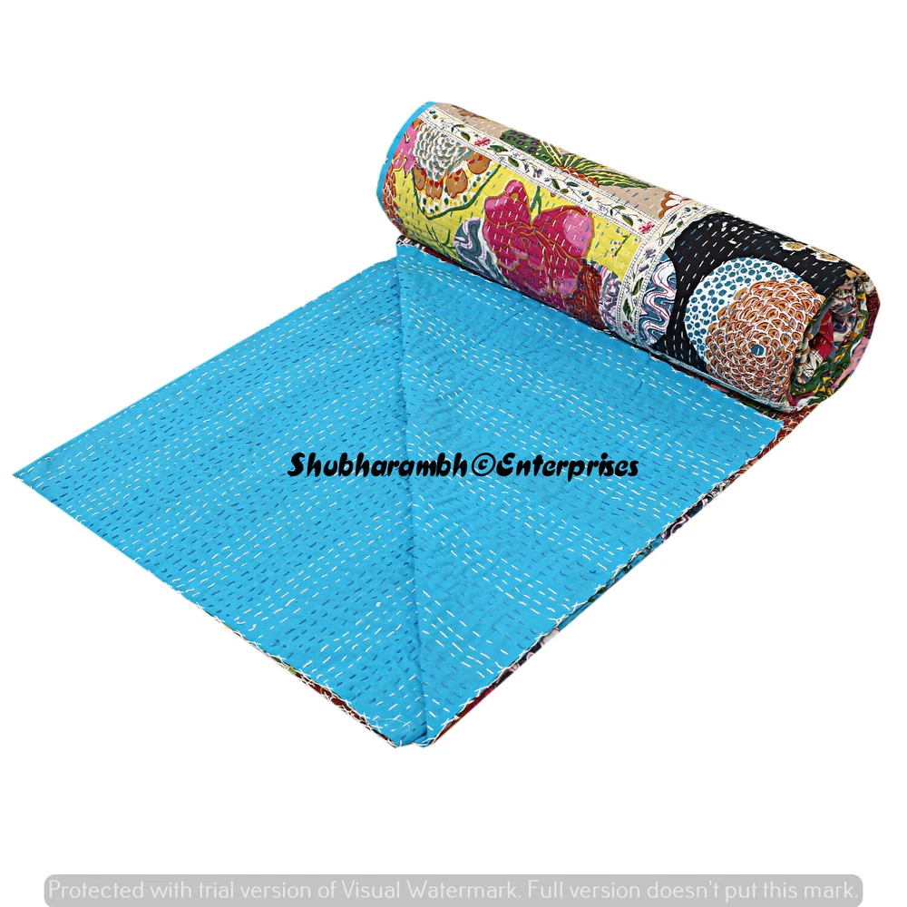 Product Details : Item - 1 PC Indian Cotton Kantha Quilt Fabric - 100% Cotton Fabric. Dimension - 90'' x 108" Inch (228 x 274 Cm) Colour - As Show in image Wash Care - Machine Washable . Product Description: Indian Cotton fabric Hand Kantha Quilted Queen Size Quilt, Blanket / Bedspread These Hippie Kantha quilt is made by two layer cotton fabric. These Kantha quilt is made by most of valuable hand art to give a unique Kantha pattern. Front side always Screen printed with kantha Work and back side always solid pattern. Payment policy: We accept the payment by pay pal. International buyers are responsible for their countries duties and taxes. Shipping Policy: We ship The Item Worldwide By FEDEX , UPS and by BOMBINO services. Feedback: Our aim is 100% buyer satisfaction. If you are pleased to our service so give a positive feedback.