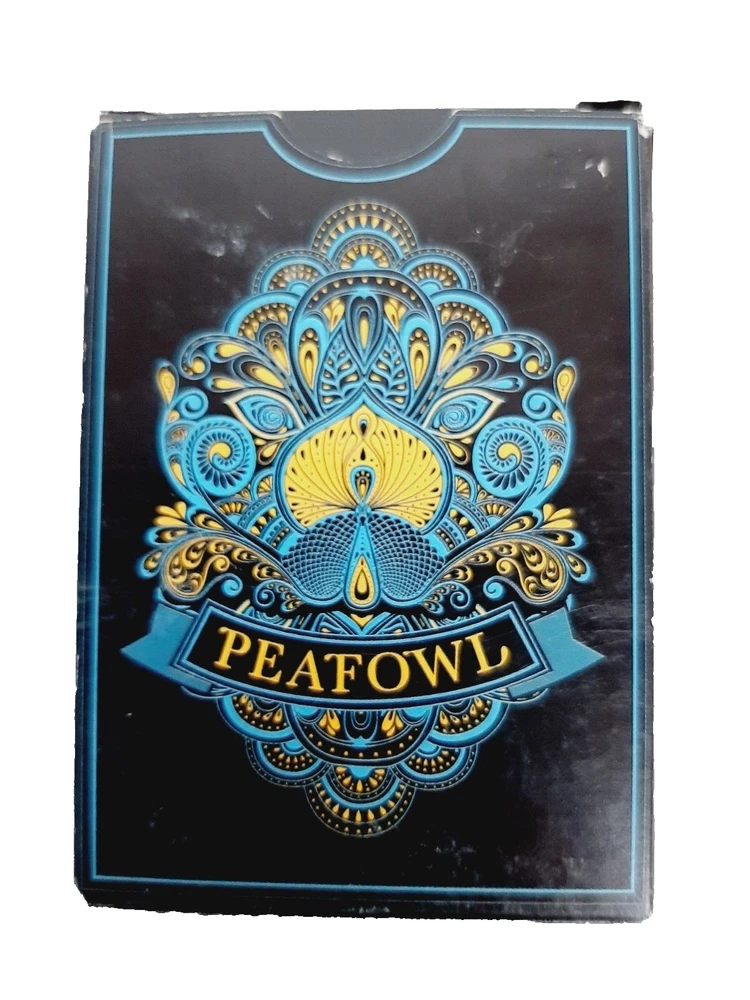 Peafowl Black Playing Cards Aloys Design Studio Yolanda Deck Linoid Finish Complete 52 card deck plus 2 jokers Very dramatic and unique dark black deck Overall good condition - box shows signs of wear, mostly at corners and edges; cards look great!